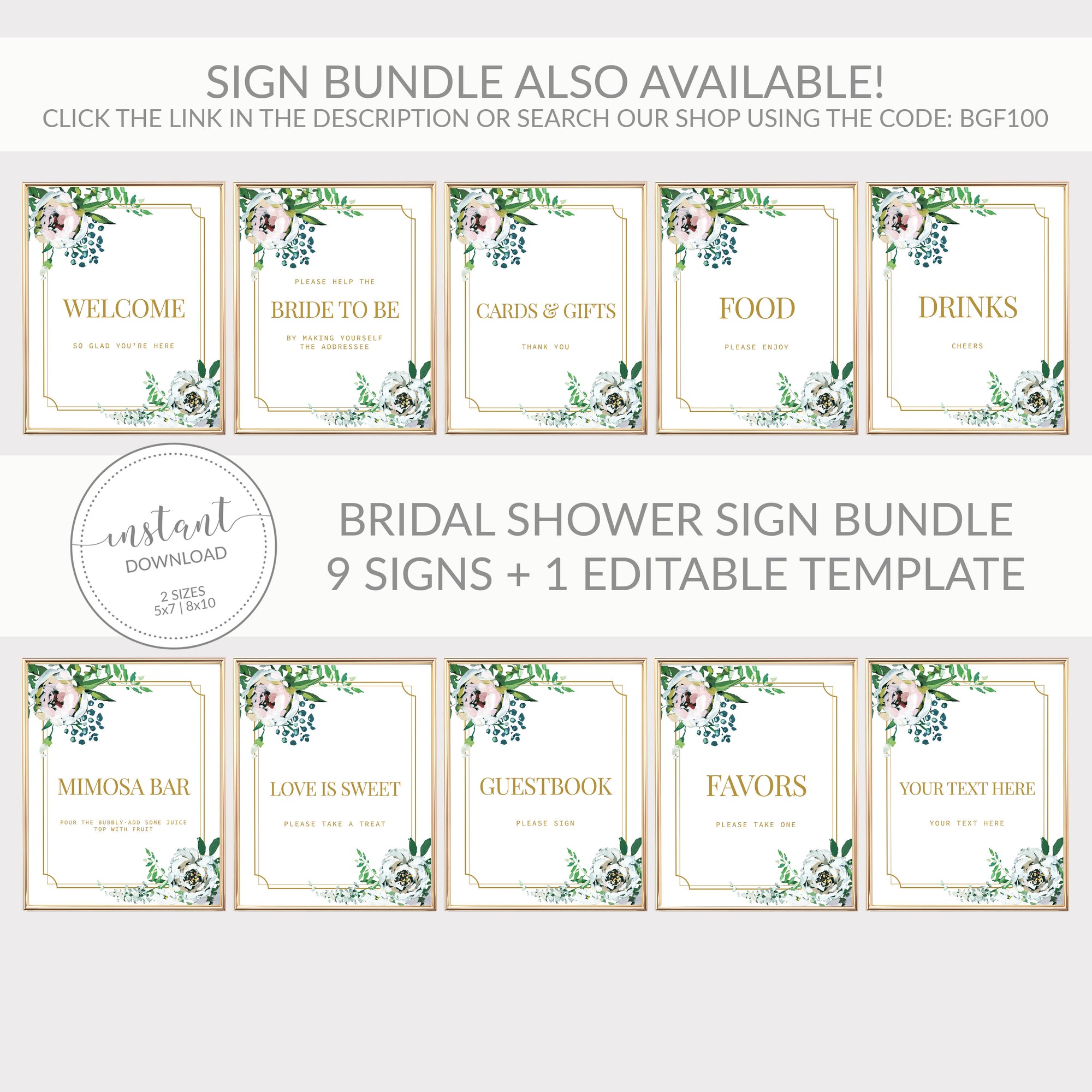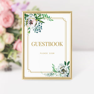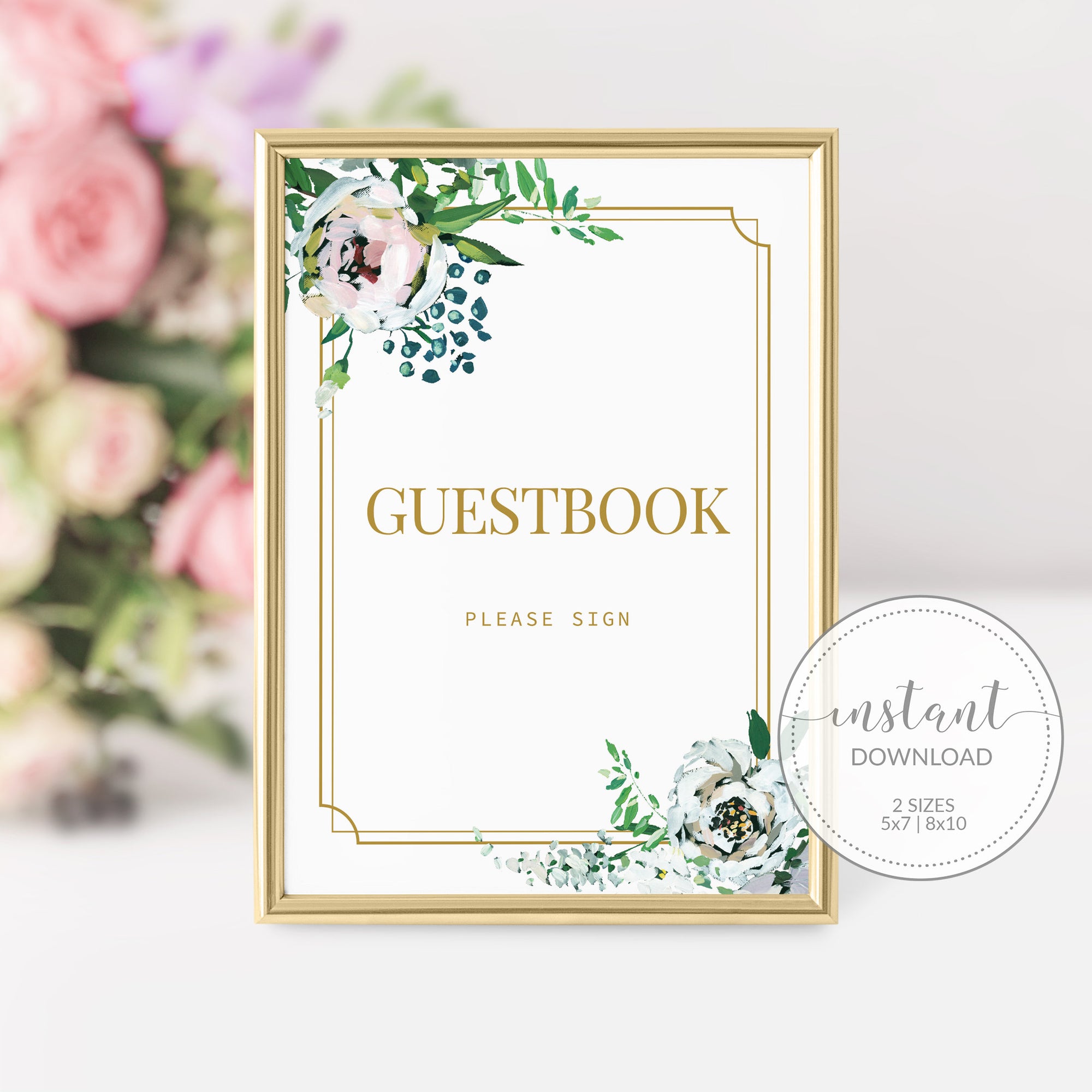 Blush Floral Greenery Guestbook Sign, Printable Gold Guestbook Sign, INSTANT DOWNLOAD - BGF100