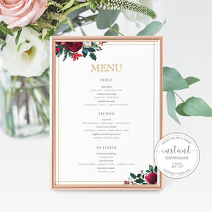 Christmas Dinner Menu Template, Winter Table Decor, Editable INSTANT DOWNLOAD - CG100