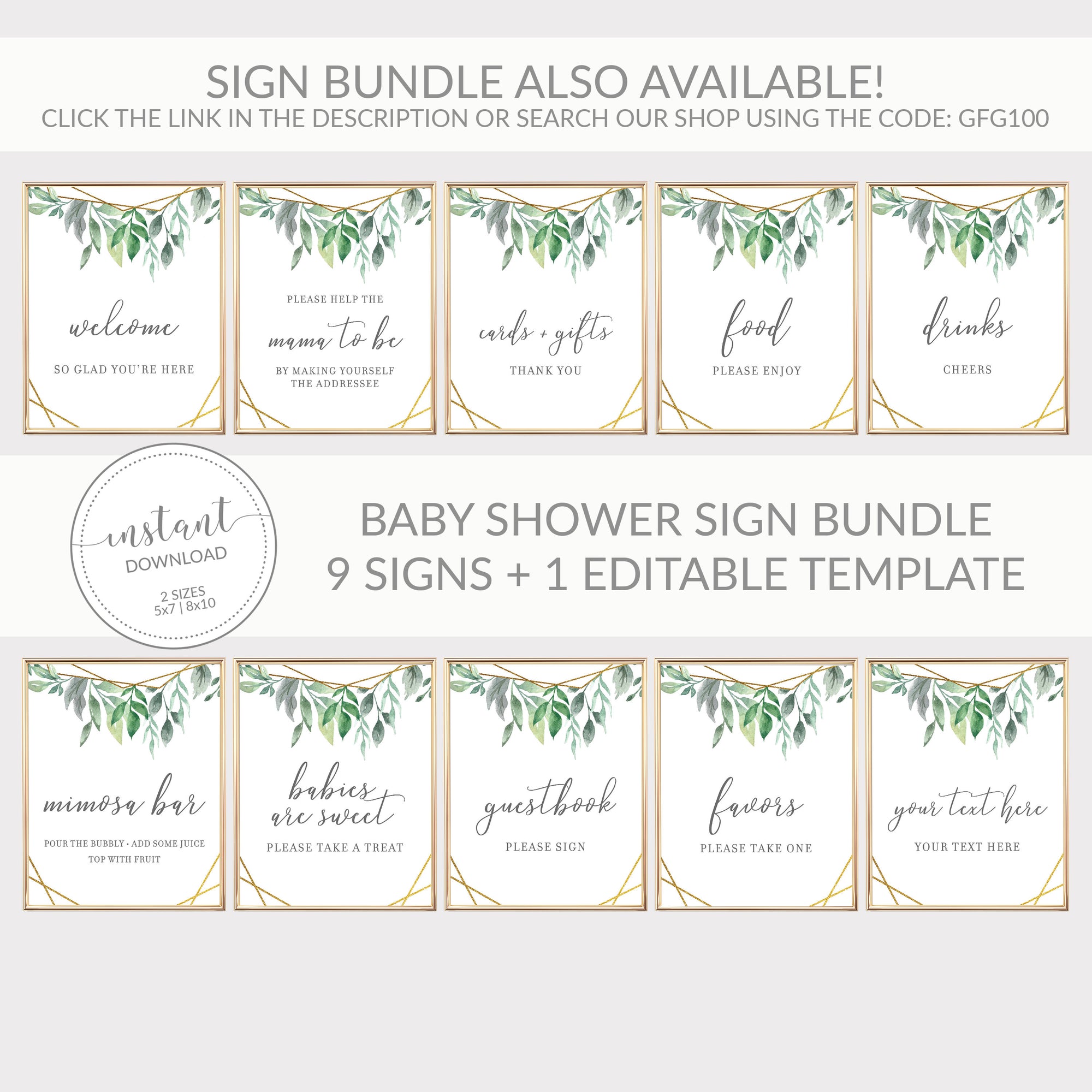 Geometric Gold Greenery Guestbook Sign Printable, INSTANT DOWNLOAD - GFG100