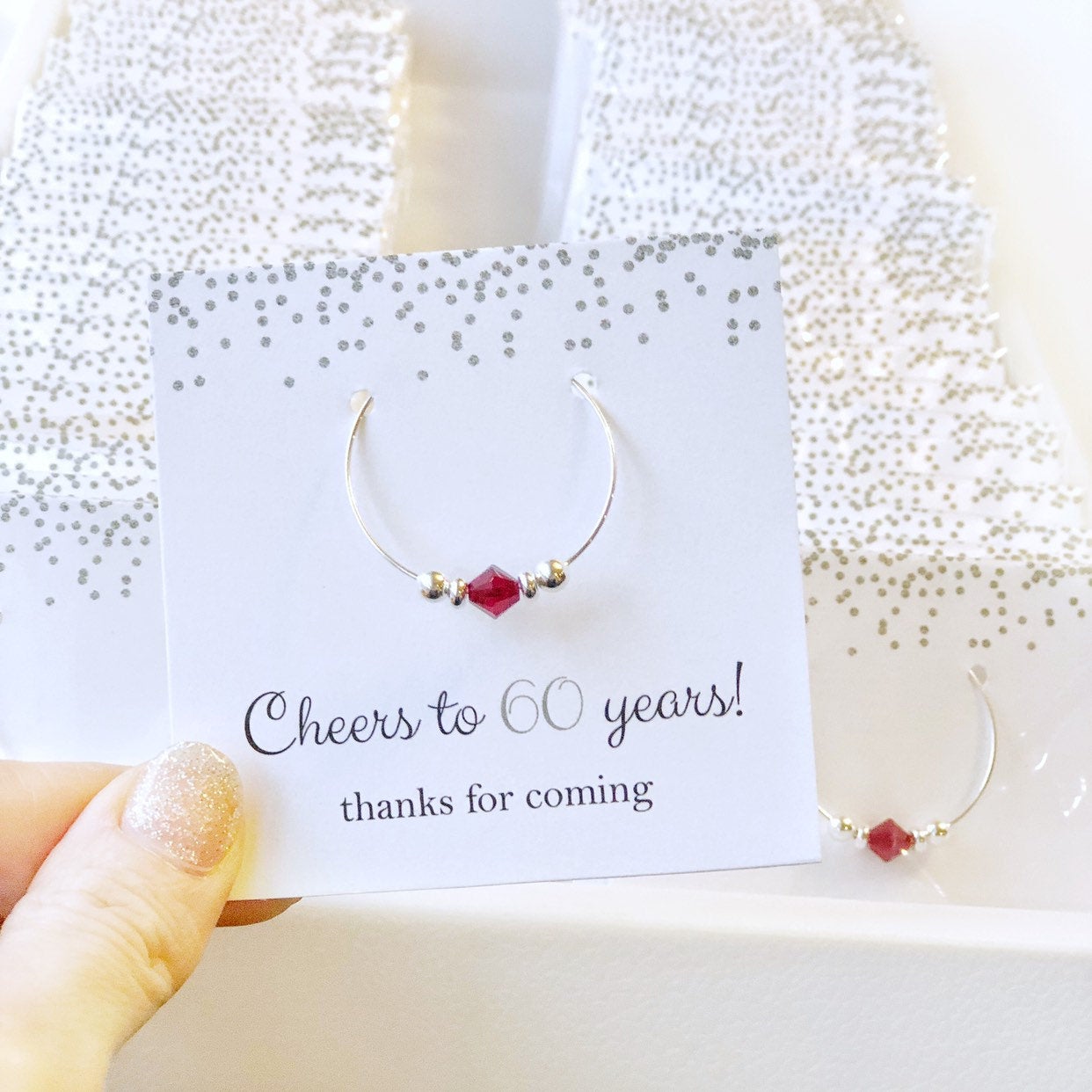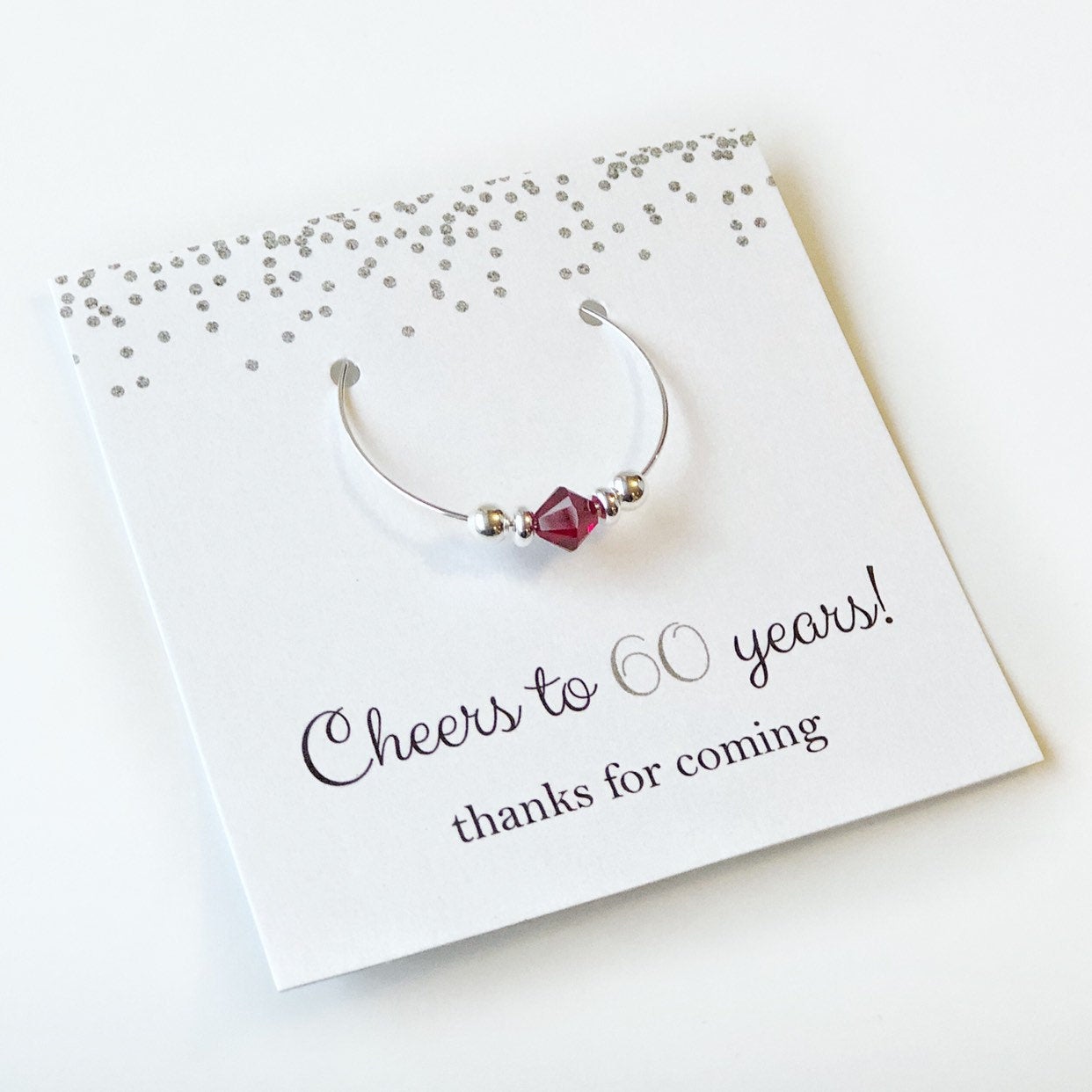 60th Birthday Party Favors, Cheers to 60 Years, Swarovski Crystal Wine Charm