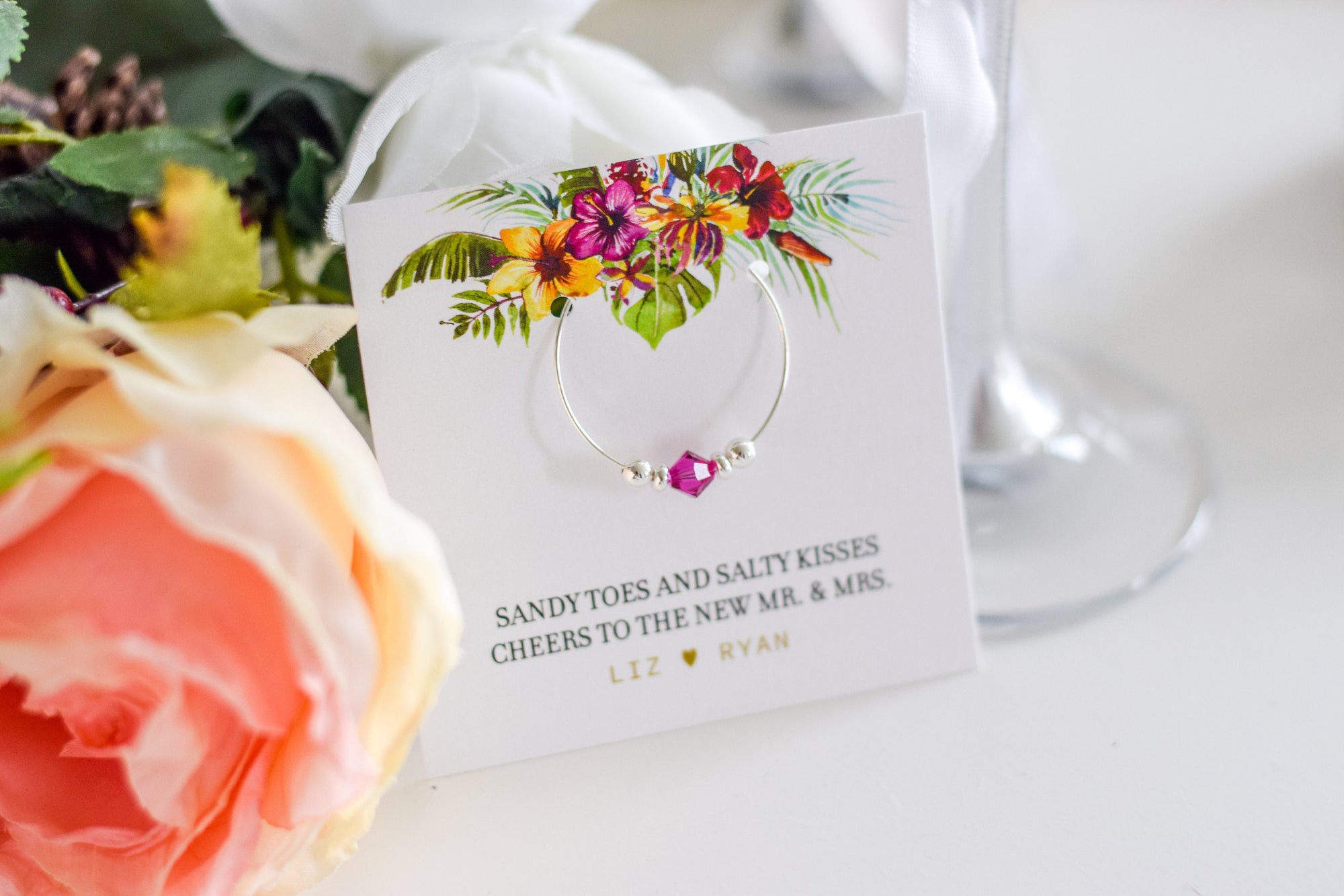 Cheers to good times and tan lines! Our Swarovski crystal wine charms are a fun and unique way to say 'thank you' to your guests. Every time they use the charms, they will think of the fabulous details and awesome time they had in anticipation of the big day!