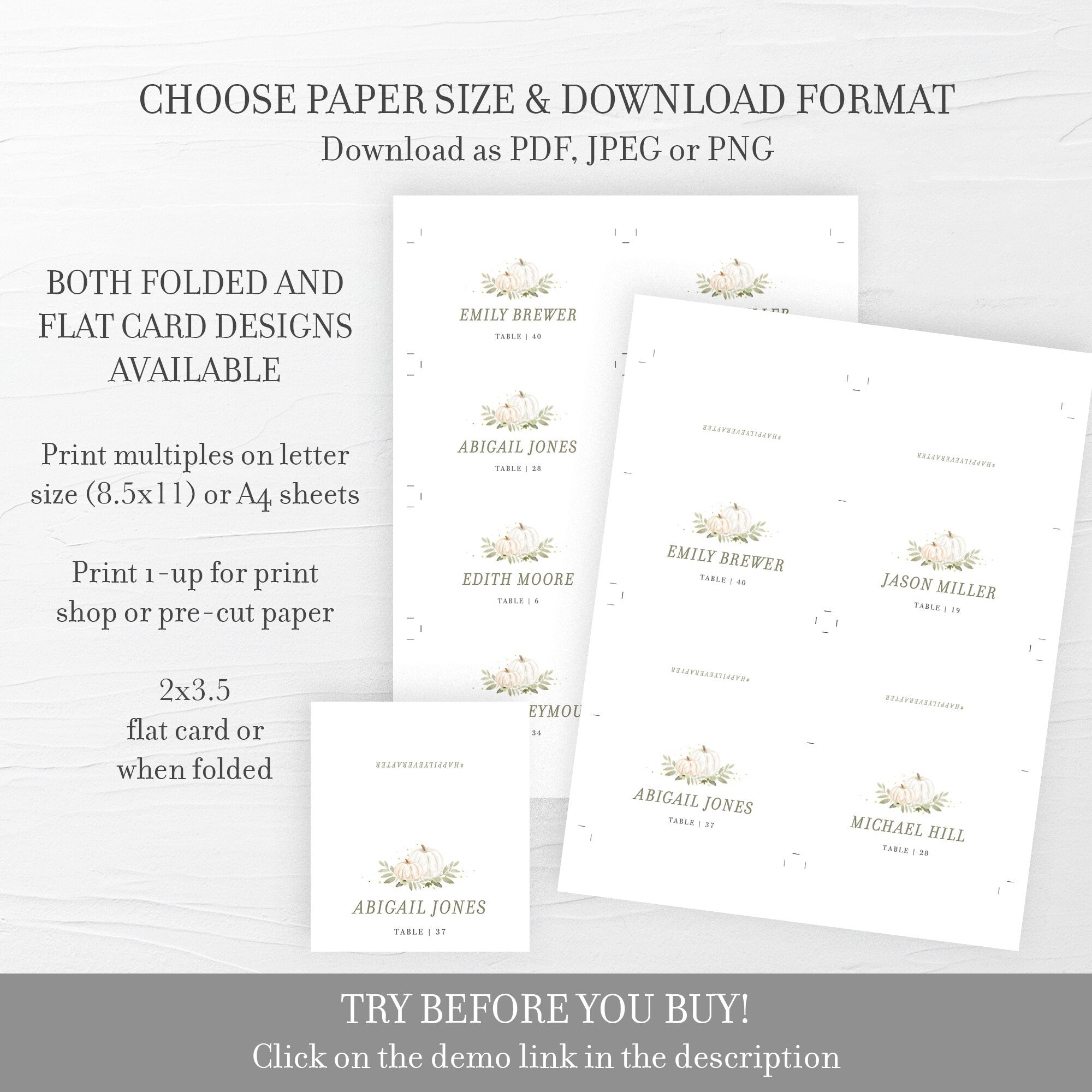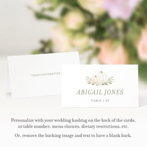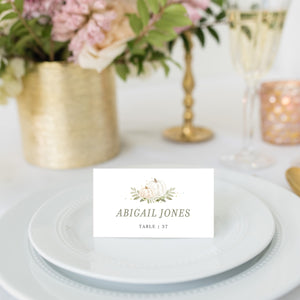 Fall Greenery Place Cards Template, Printable Pumpkin Wedding Name Cards, Editable INSTANT DOWNLOAD - PG100