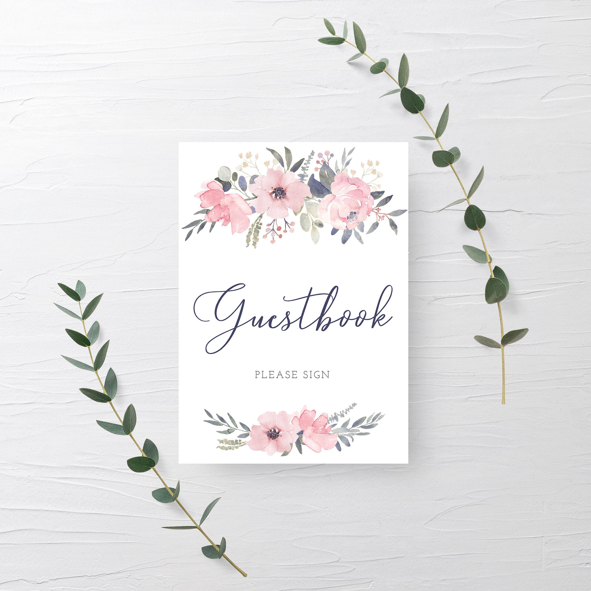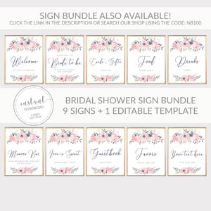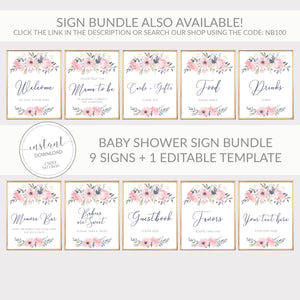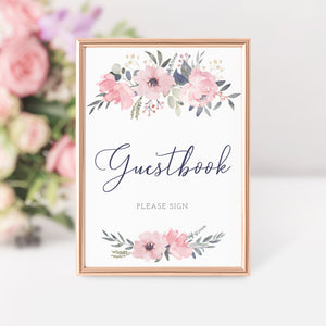 Navy and Blush Floral Guestbook Sign Printable, INSTANT DOWNLOAD - NB100