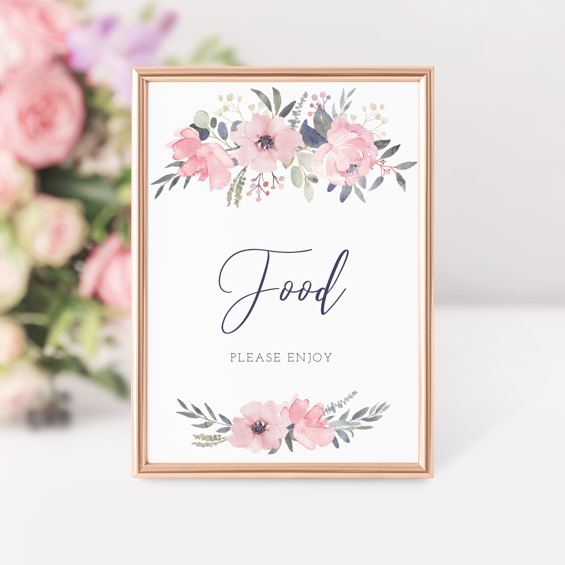 Navy and Blush Floral Food Sign Printable, INSTANT DOWNLOAD - NB100