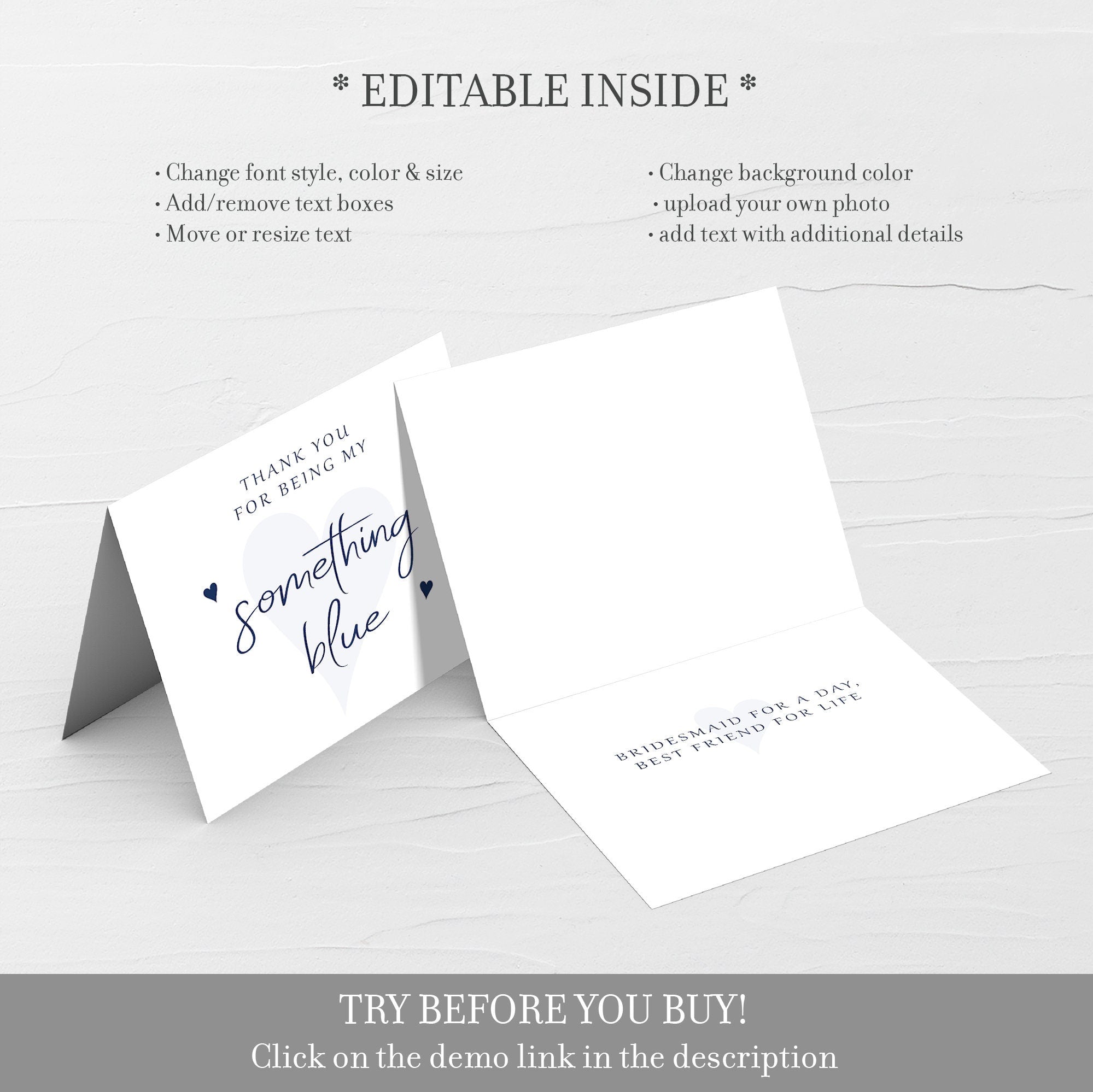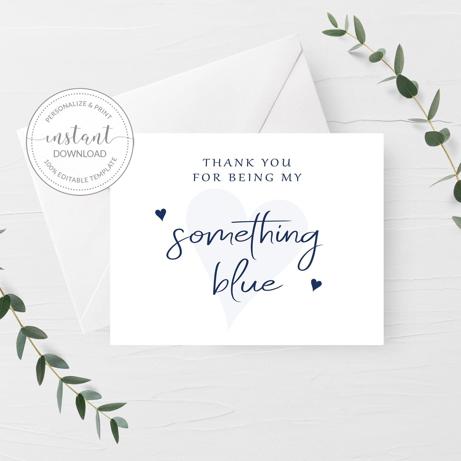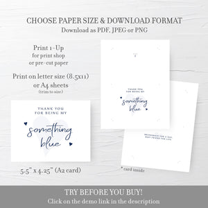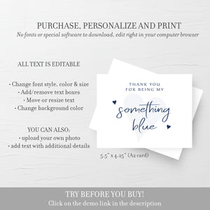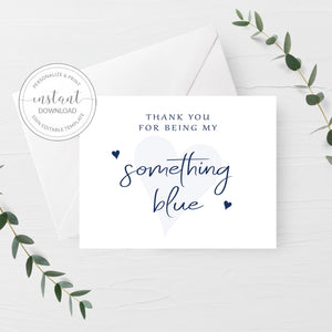 Thank You For Being My Something Blue Card Template, Printable Bridesmaid Thank You Card, Editable INSTANT DOWNLOAD, A2 Size
