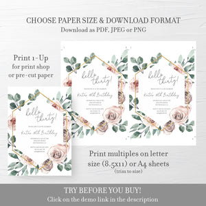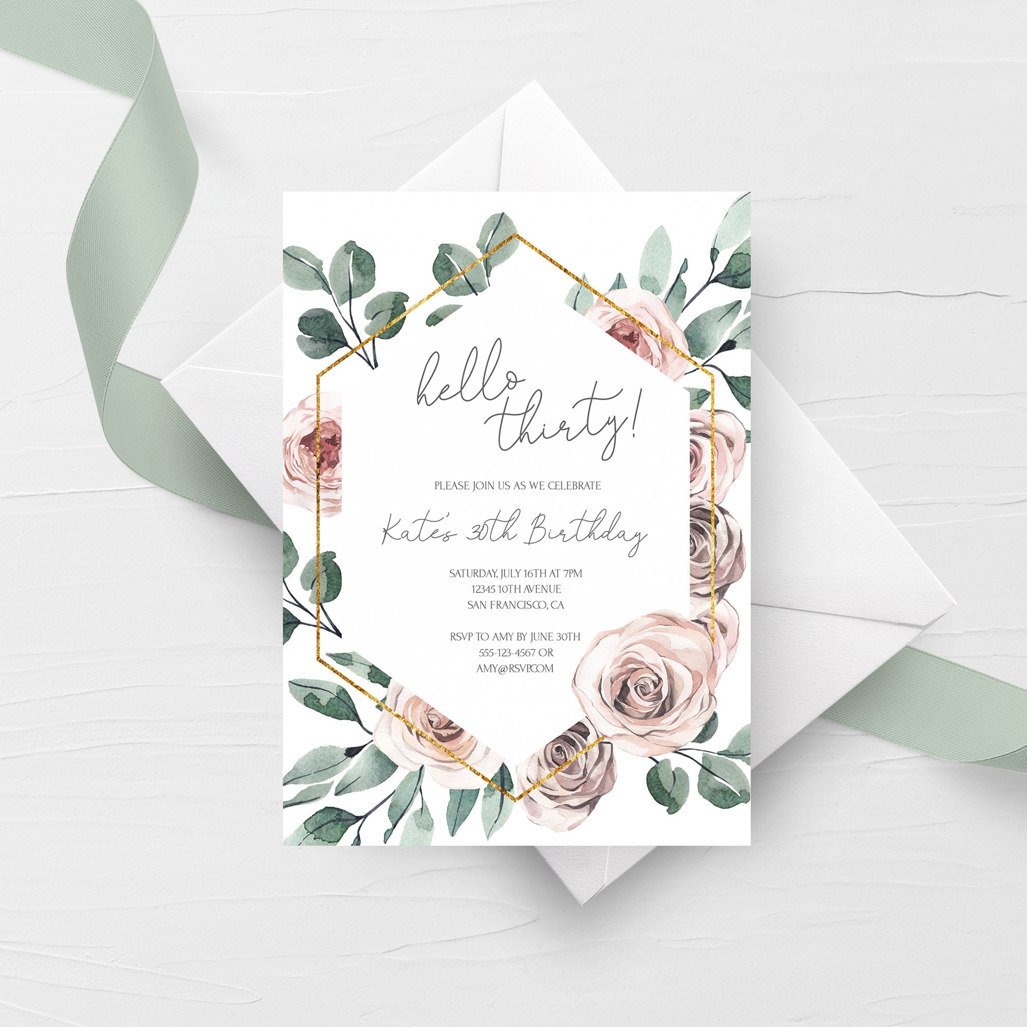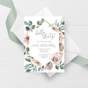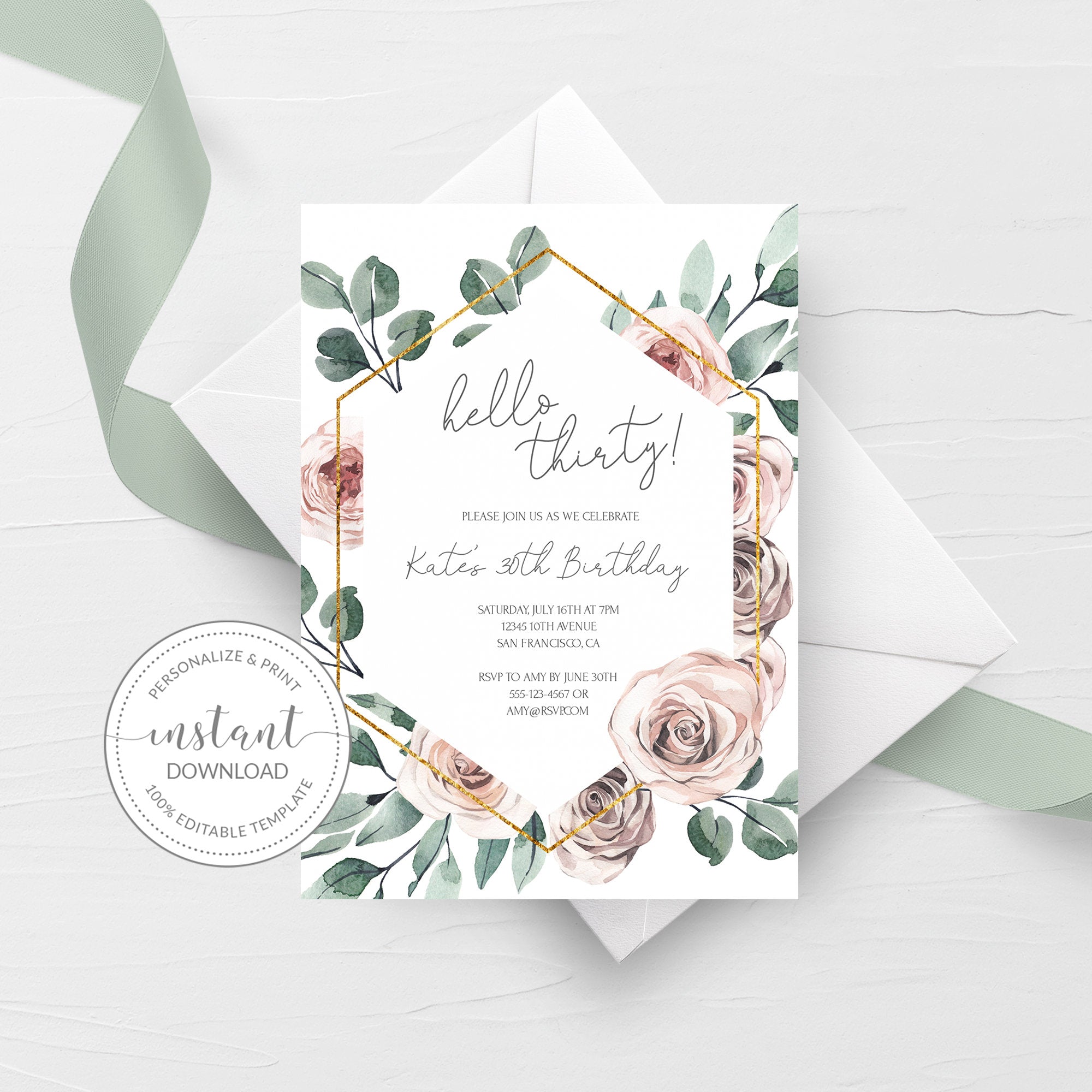Boho Rose 30th Birthday Invitation Template, Printable Party Invite, Editable INSTANT DOWNLOAD - BR100