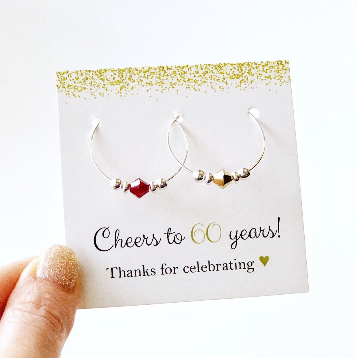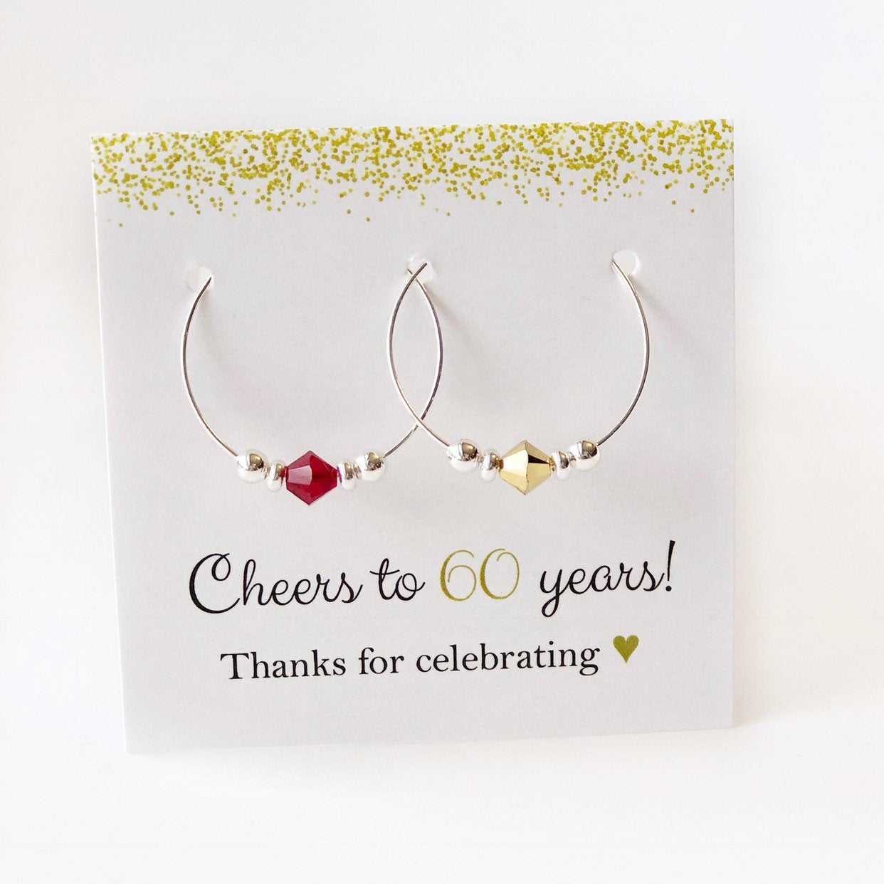 Cheers to 60 years! Our gold Swarovski crystal wine charms are an elegant and unique way to say 'thank you' to your birthday party guests. Every time they use the charms, they will think of the fabulous details and awesome time they had celebrating this milestone birthday.