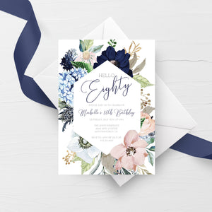 Navy and Blush 80th Birthday Invitation Template, Printable Party Invite, Editable INSTANT DOWNLOAD - MB100