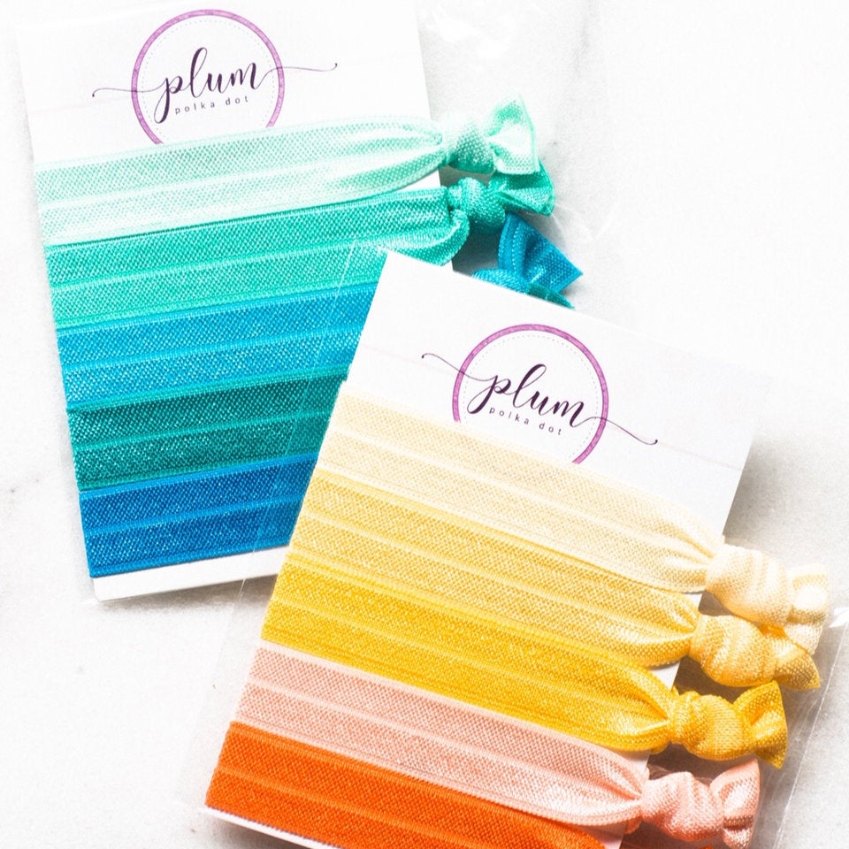 Our hair tie 5-packs are BUY 3 GET 1 FREE! Add any four to your cart and use code "HAIRTIE5PACKS" at checkout.
