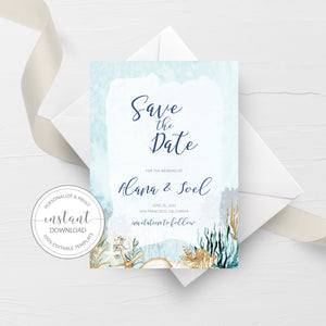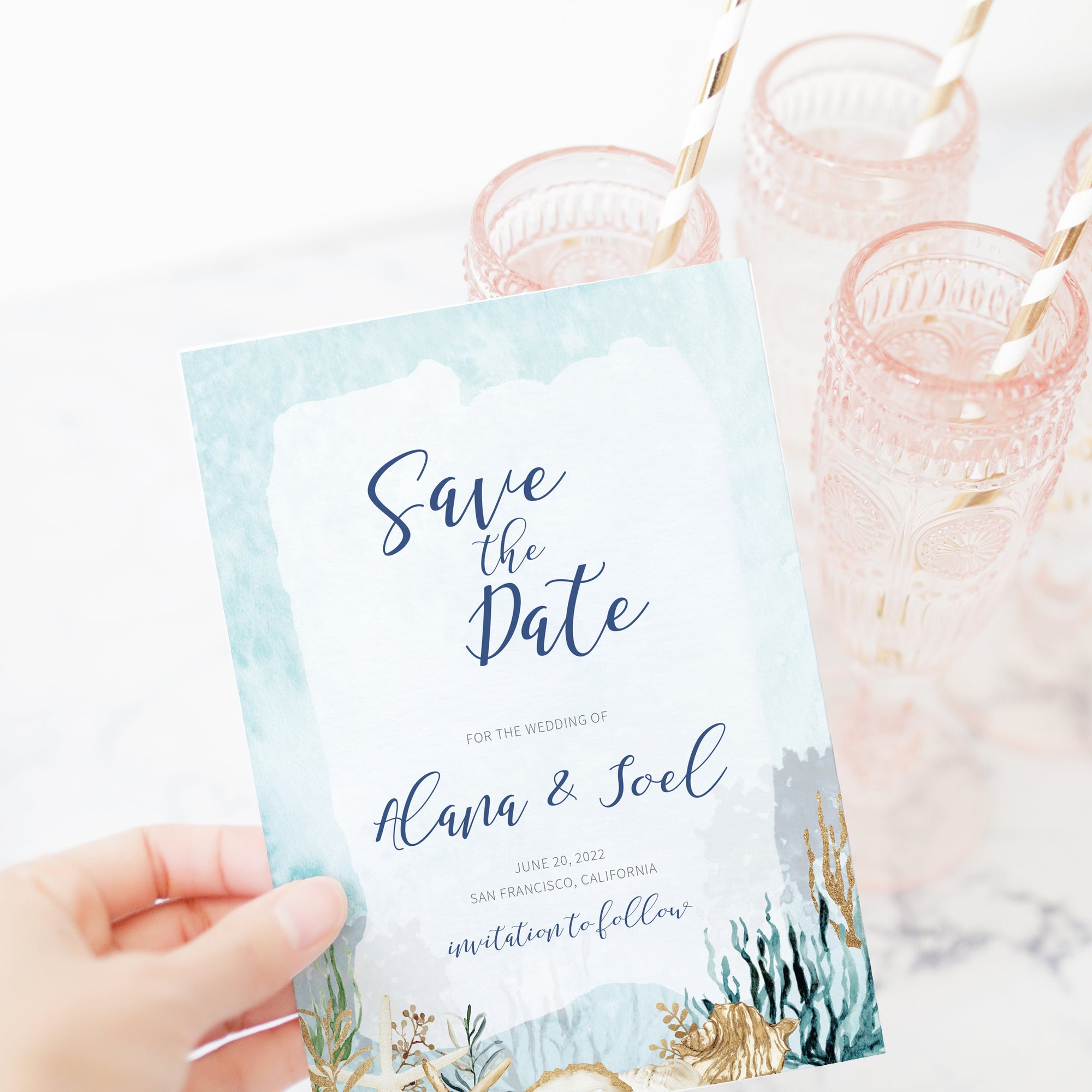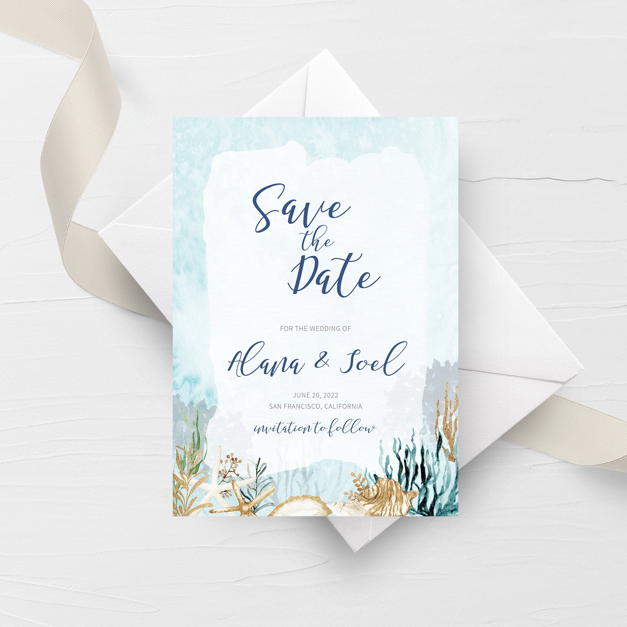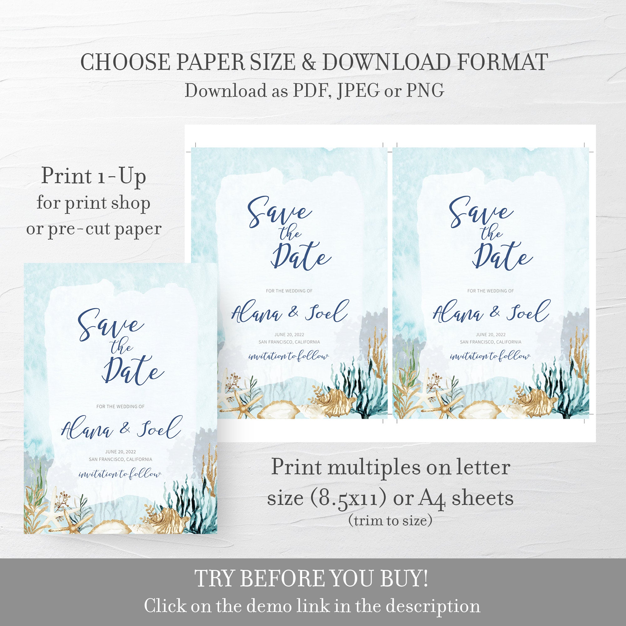 Beach Themed Save The Date Card Template, Printable Wedding Engagement Announcement, 5x7 - MB200