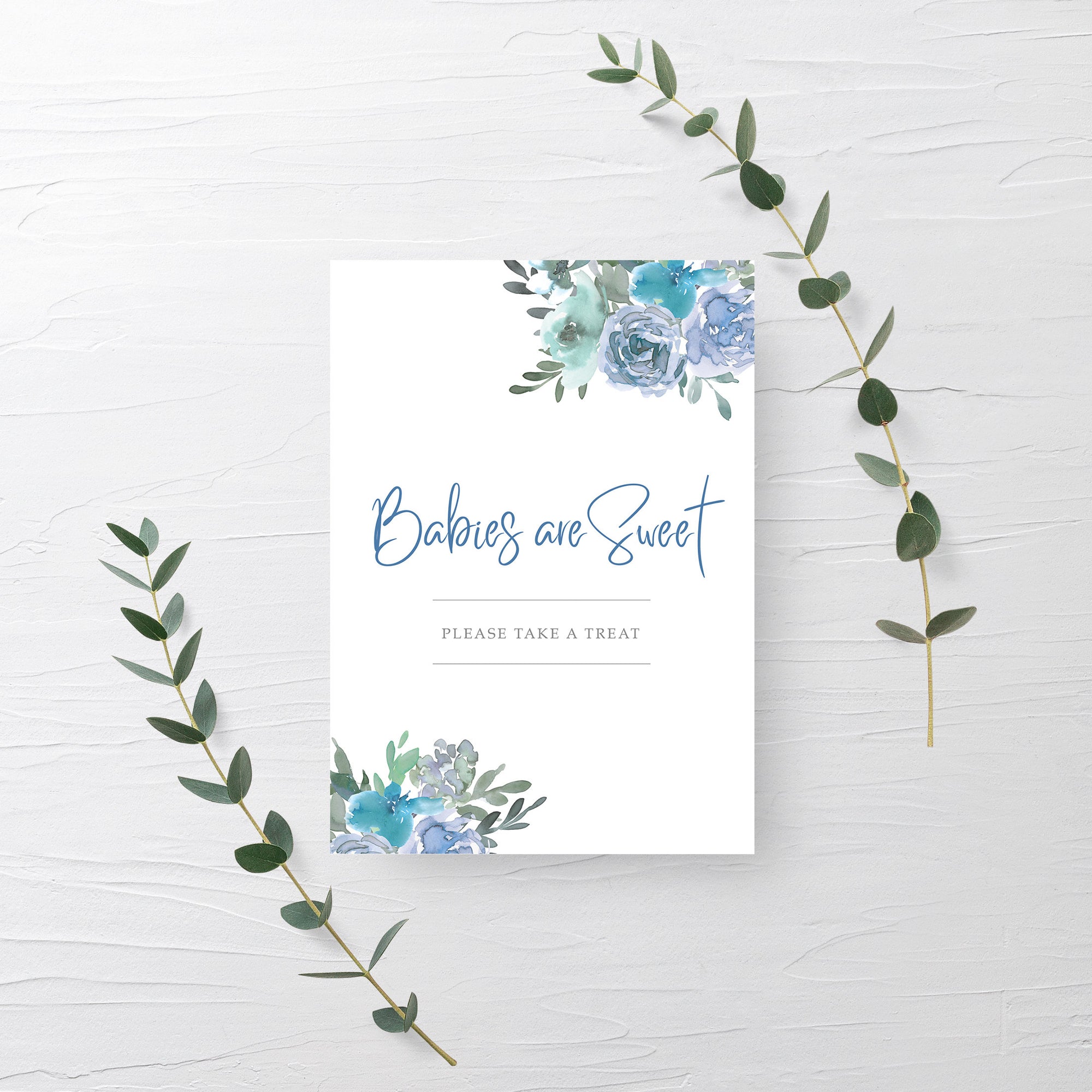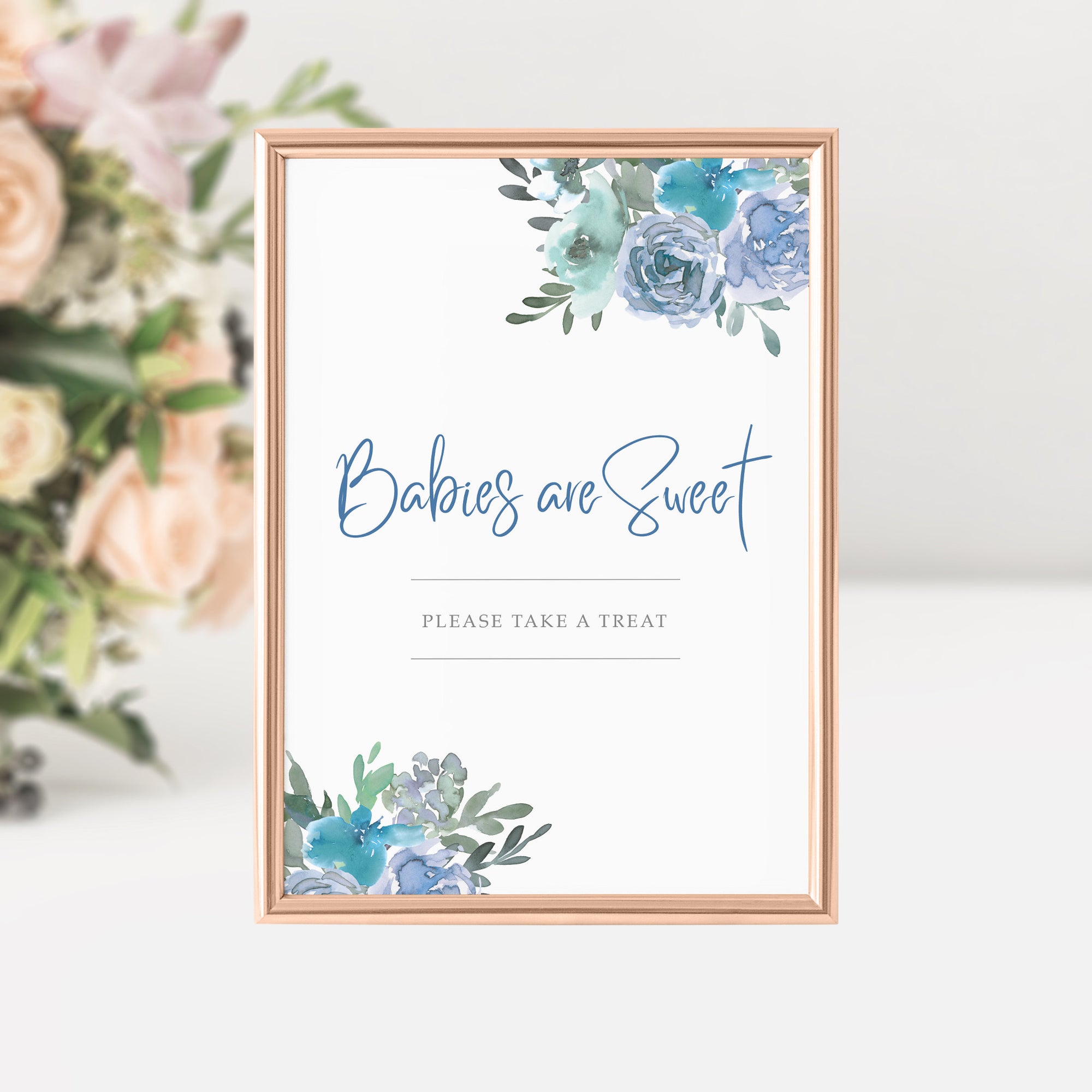 Blue Floral Baby Shower Dessert and Treat Table Sign Printable, INSTANT DOWNLOAD - BF100