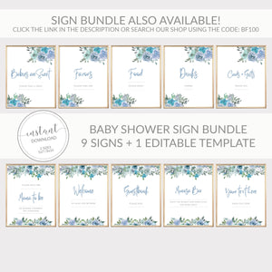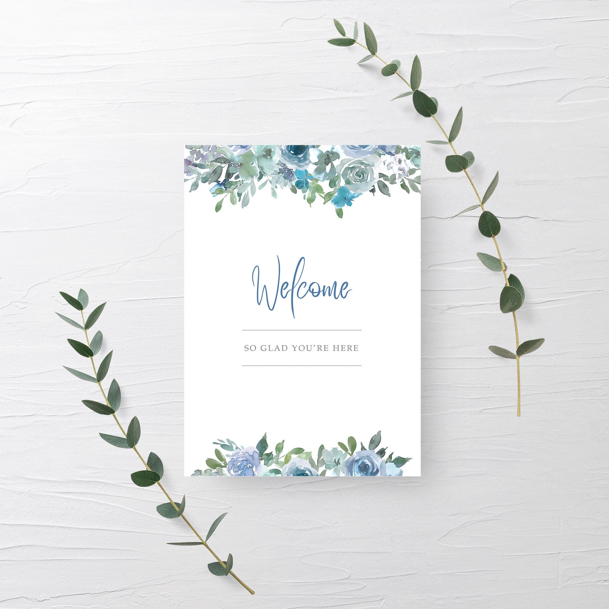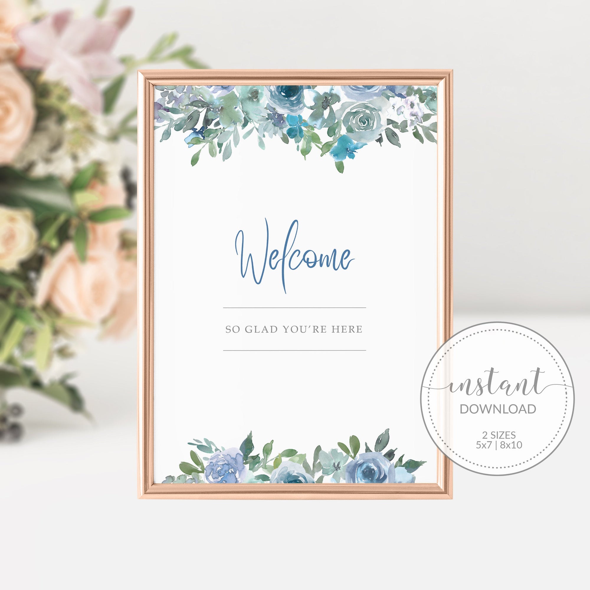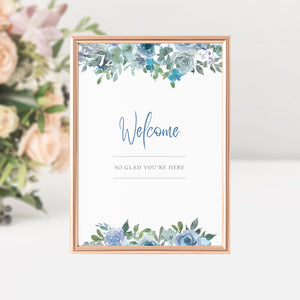 Blue Floral Welcome Sign Printable, INSTANT DOWNLOAD - BF100