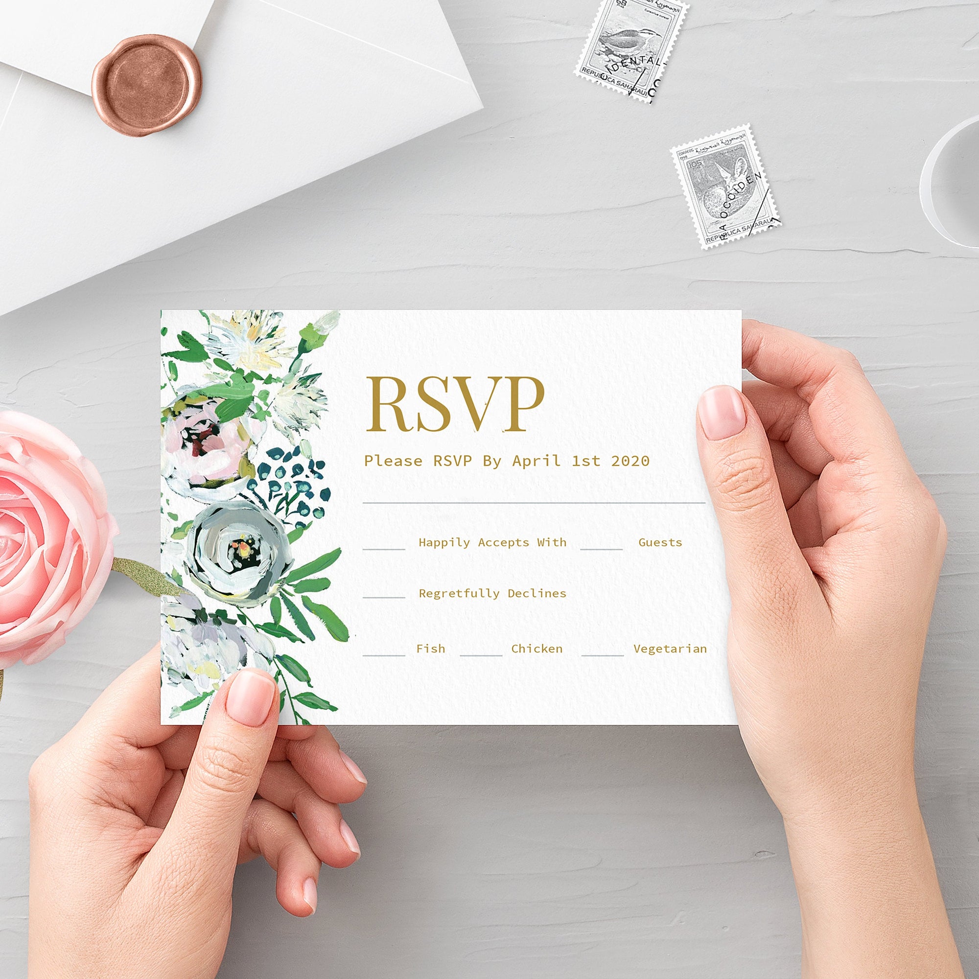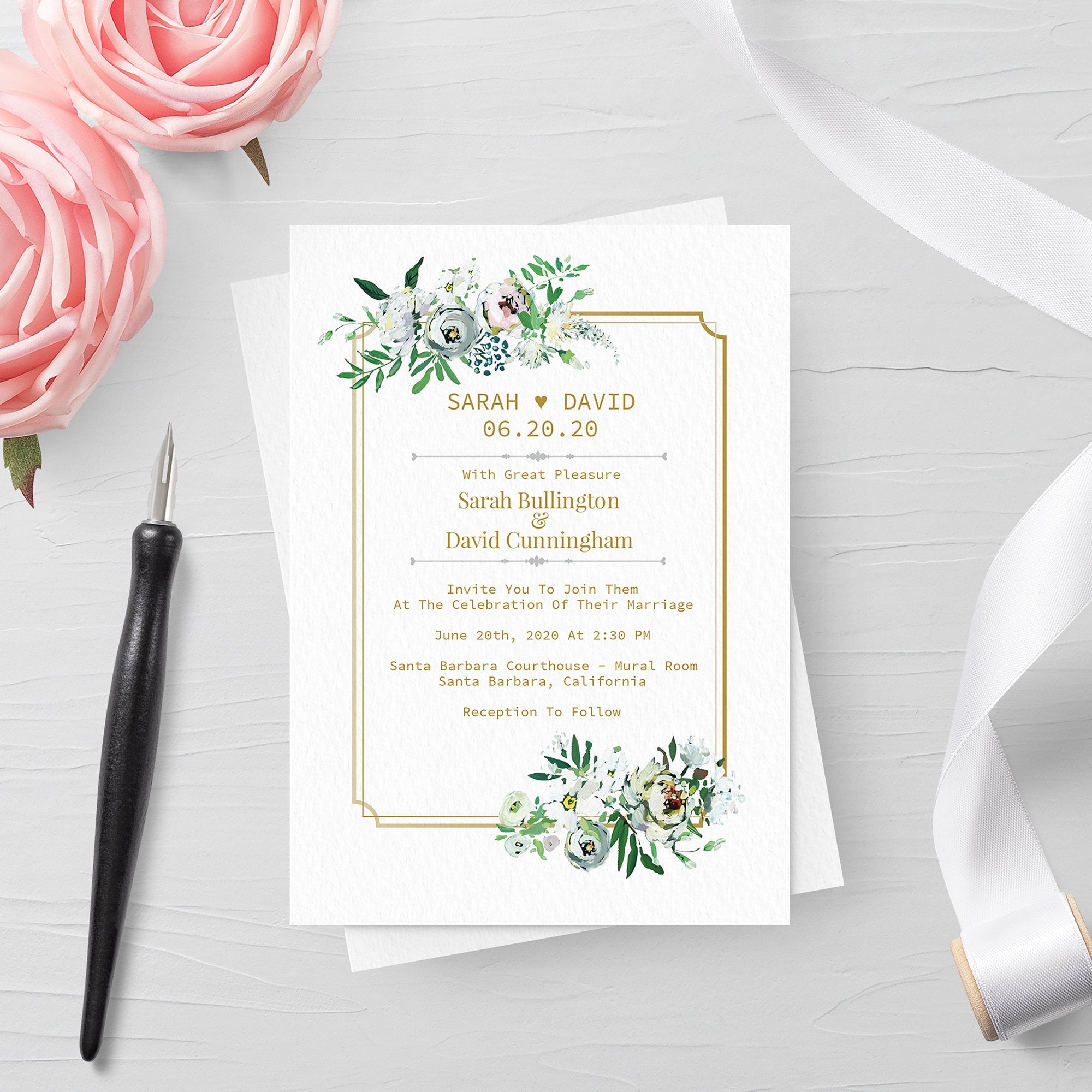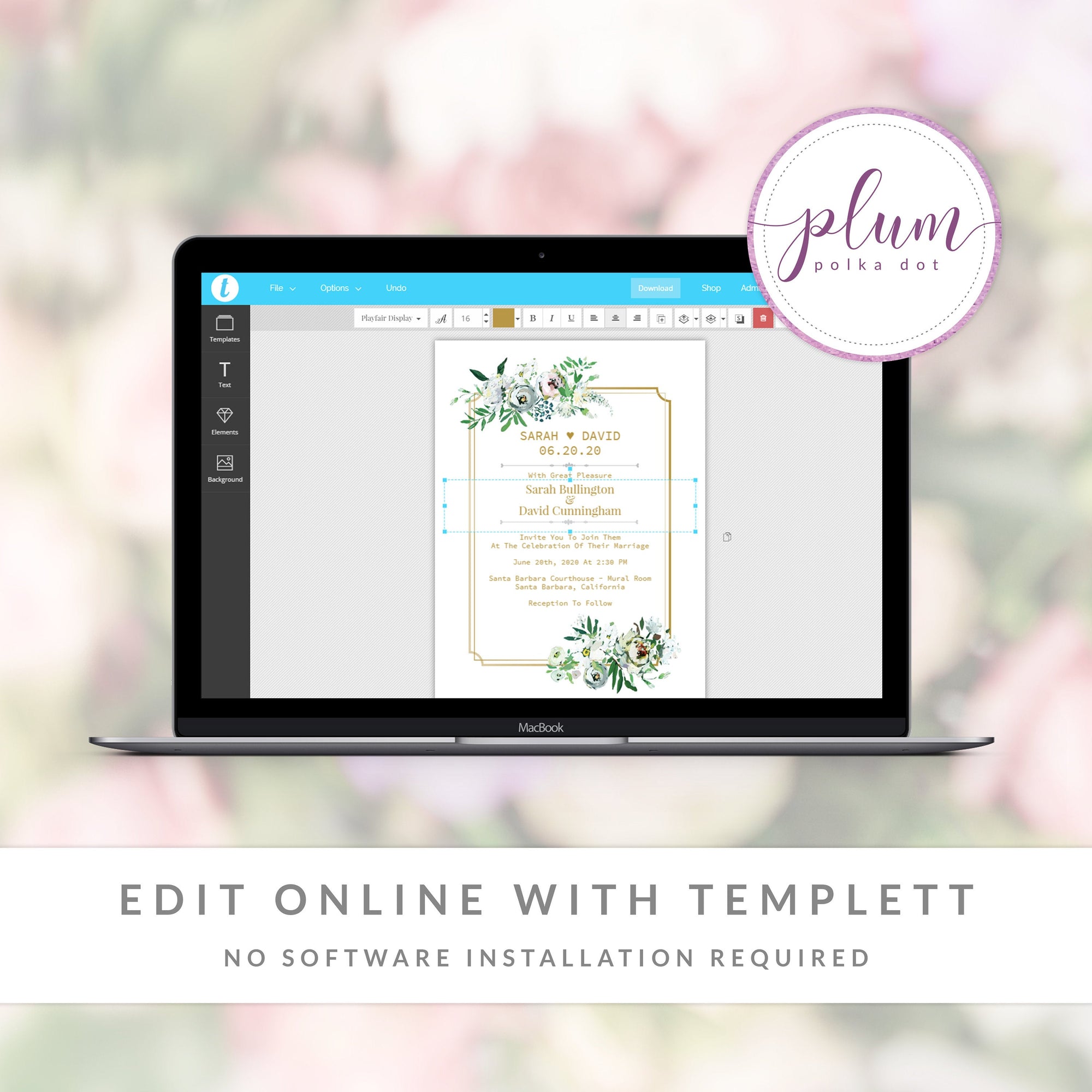 This blush and gold floral greenery invitation suite is available as an INSTANT DOWNLOAD editable template. Edit right in your browser using the online program, Templett. No software to download or fonts to install and you can even try it out before you buy!