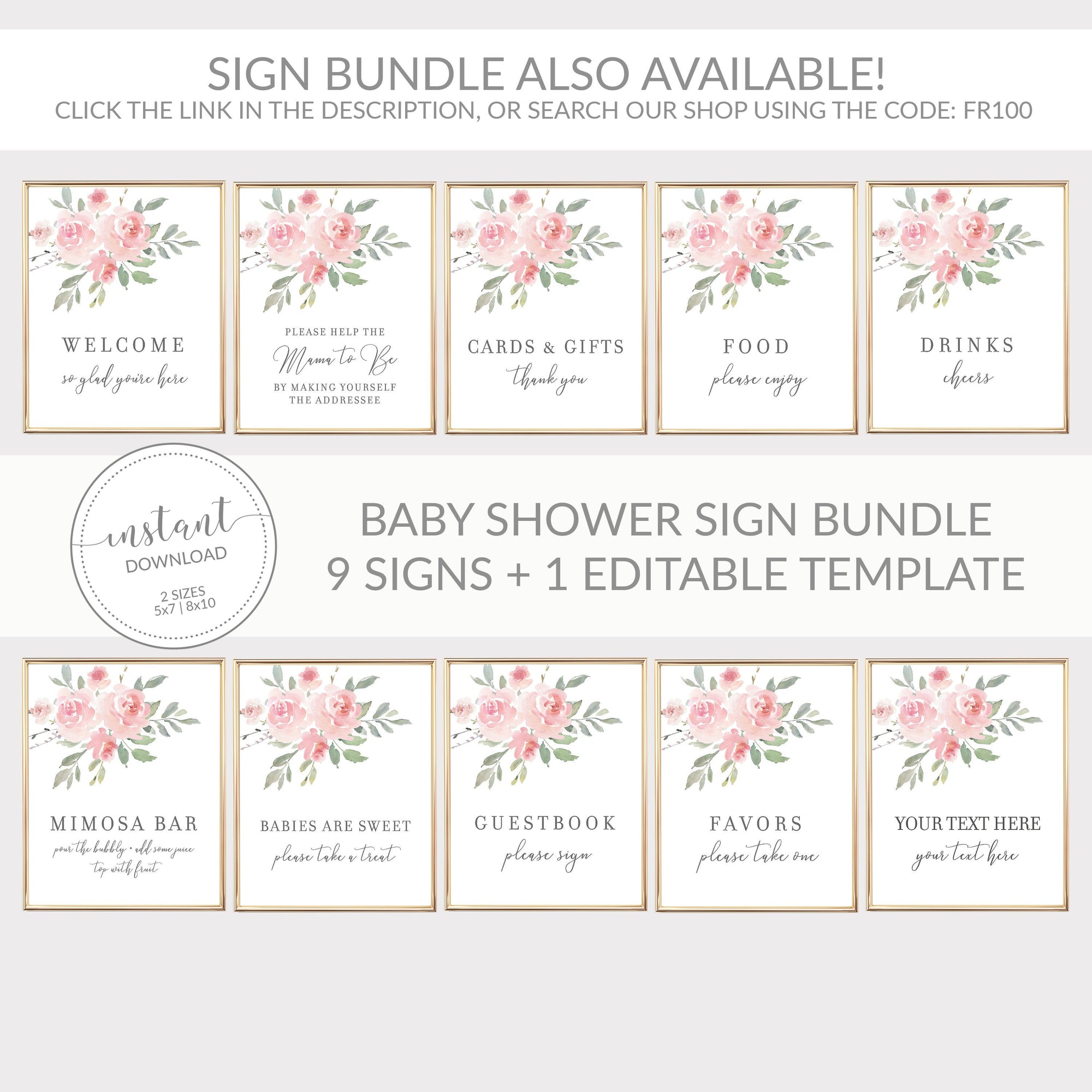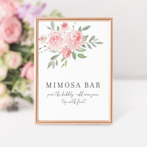 Blush Pink Floral Mimosa Bar Sign Printable, Bubbly Bar Sign, INSTANT DOWNLOAD - FR100