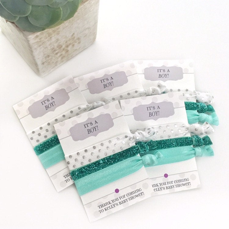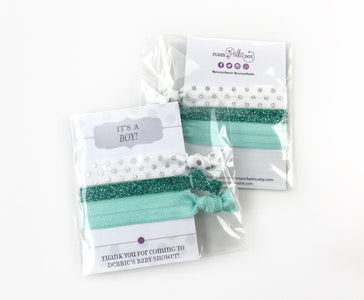 It's a Boy Baby Shower Favors, Aqua and Teal Glitter, Hair Ties