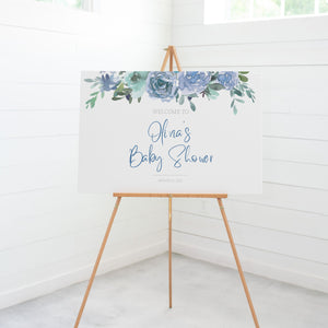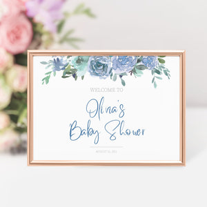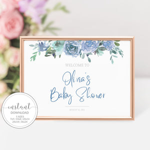 Blue Floral Boy Baby Shower Welcome Sign Template, Printable Large Welcome Sign, Editable INSTANT DOWNLOAD - BF100