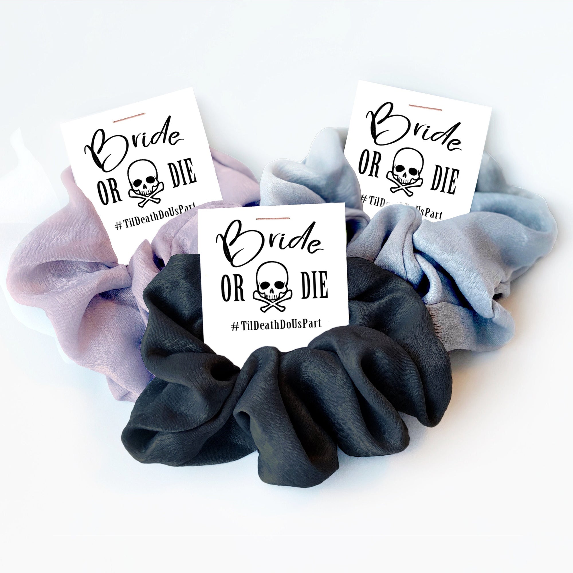 Bride Or Die Bachelorette Party Favors, Til Death Do Us Part Gothic Wedding Bridesmaid Gifts, Hair Scrunchies