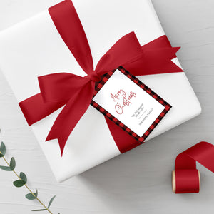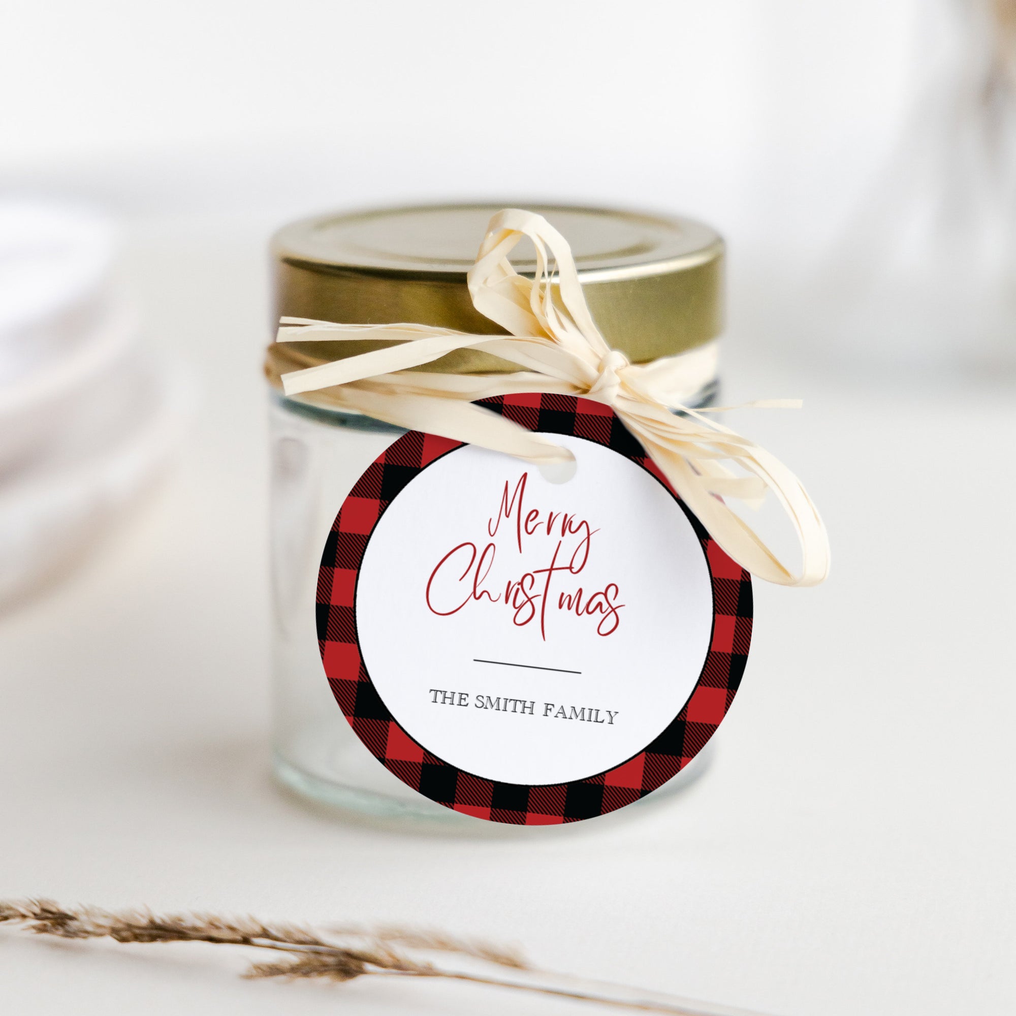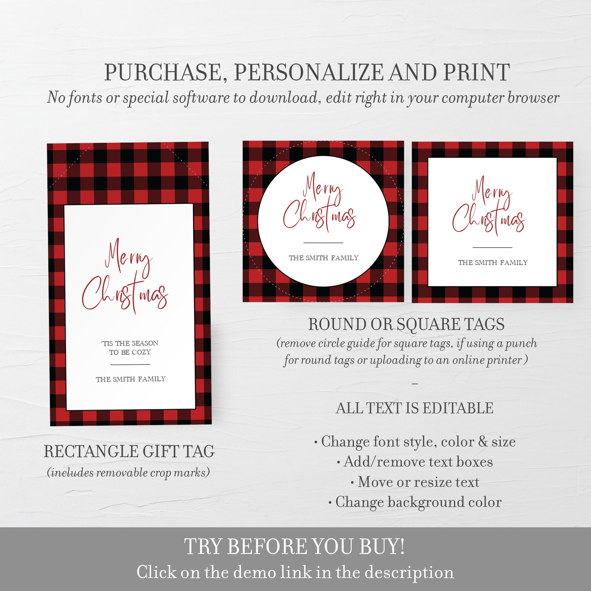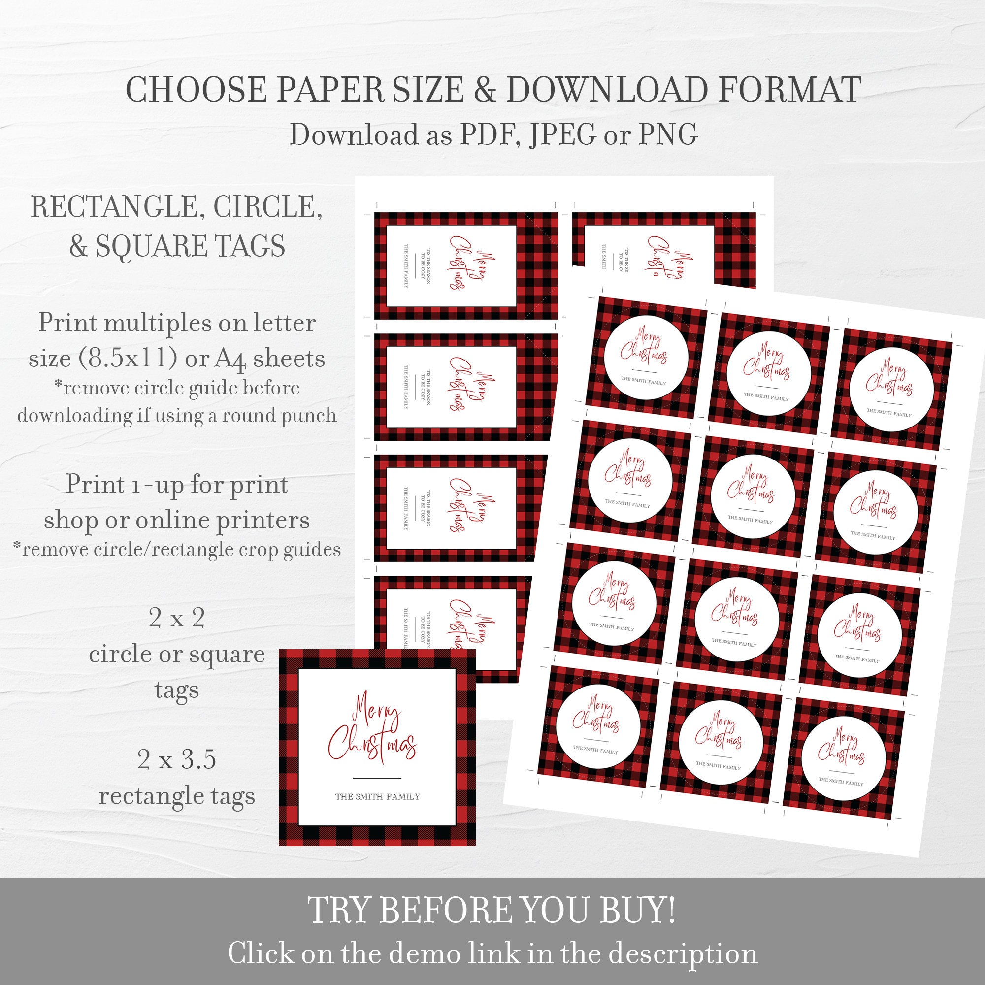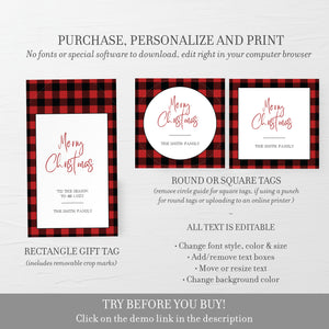 Buffalo Plaid Christmas Gift Tag Template, Printable Christmas Favor Tags, Round Square or Rectangle, Editable INSTANT DOWNLOAD - BP100