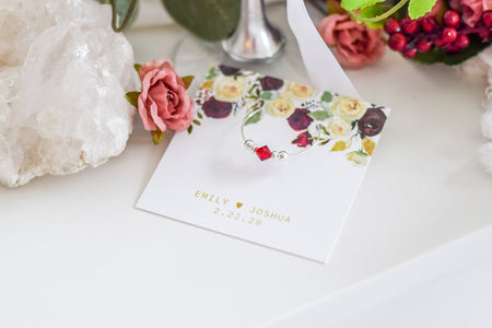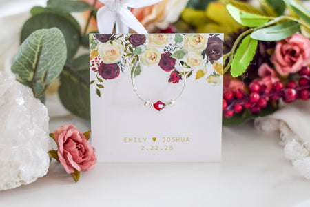 Each Swarovski crystal wine charm comes affixed to a card and packaged in a clear cello envelope, perfect for gifting to your guests.