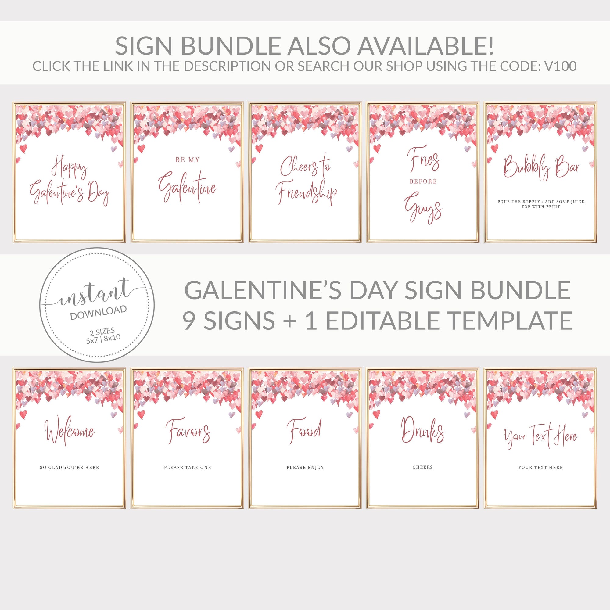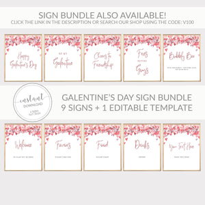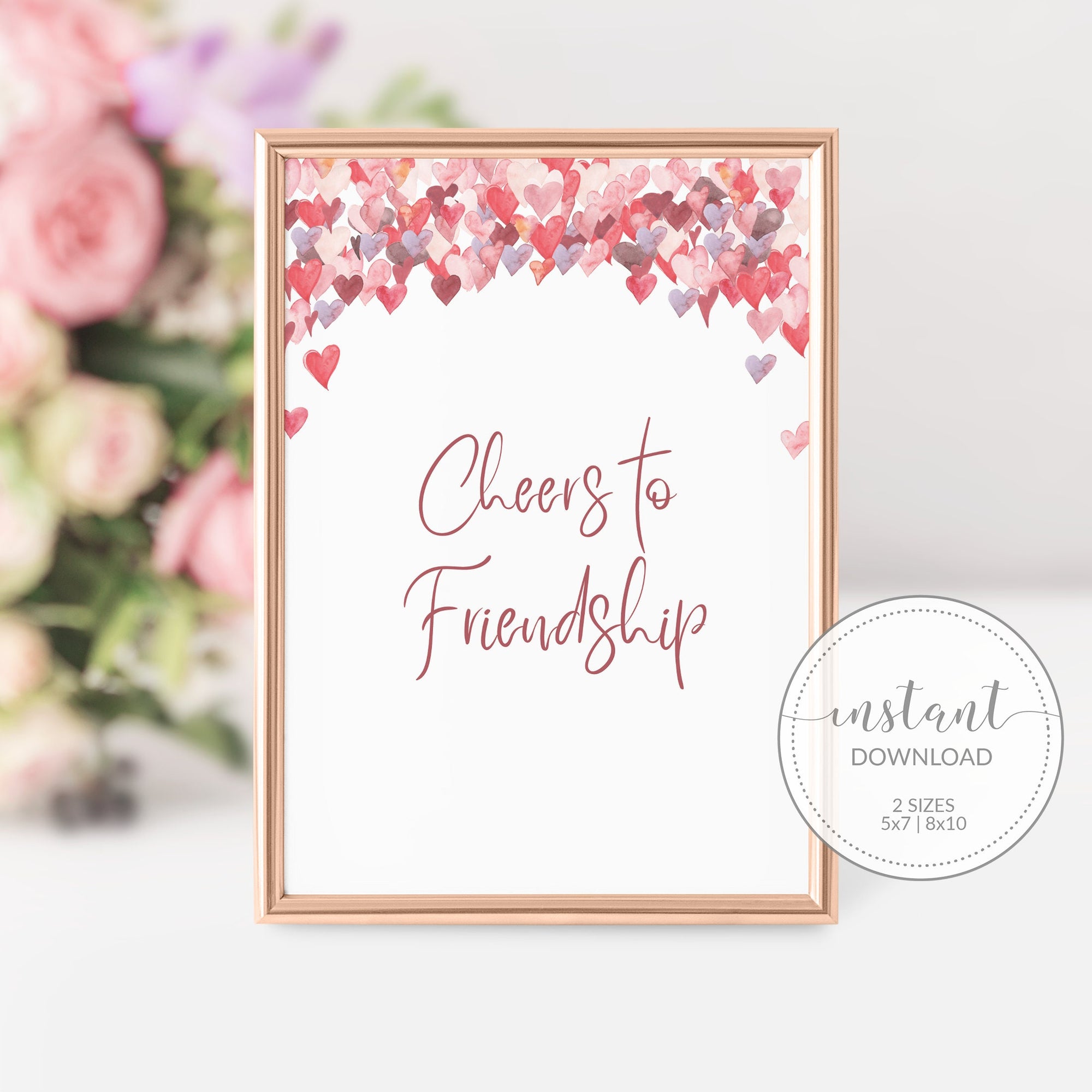 Galentines Hearts Cheers To Friendship Sign Printable, INSTANT DOWNLOAD - VH100
