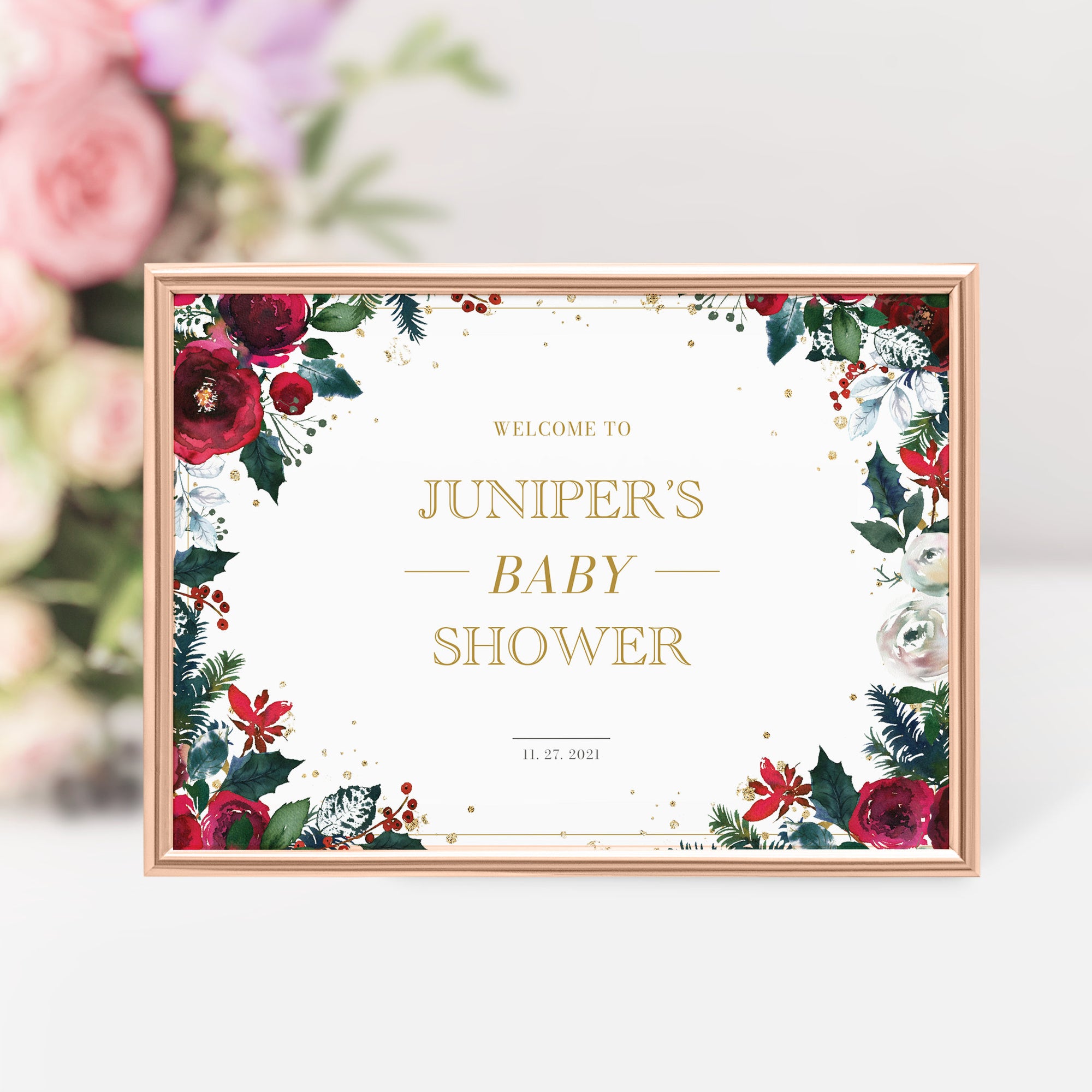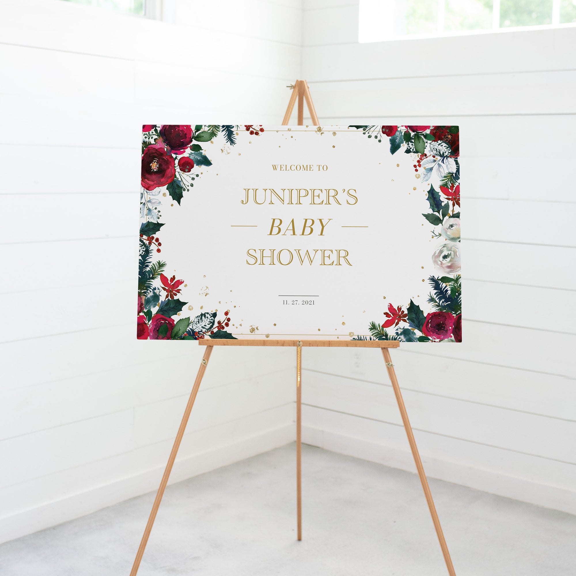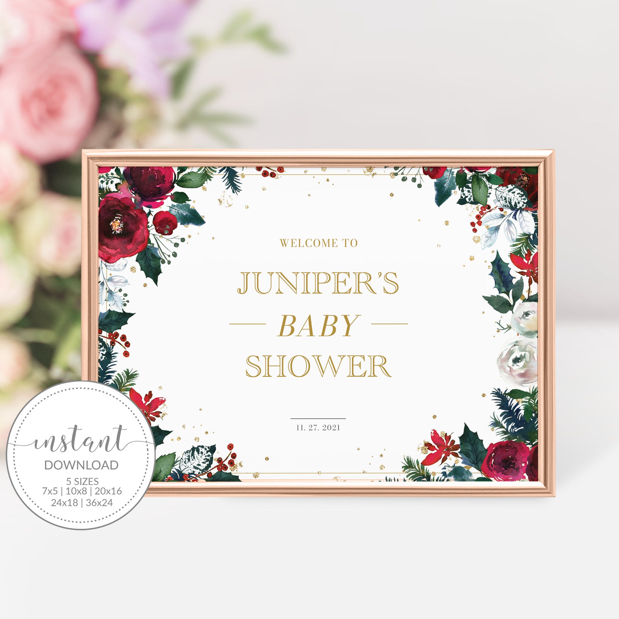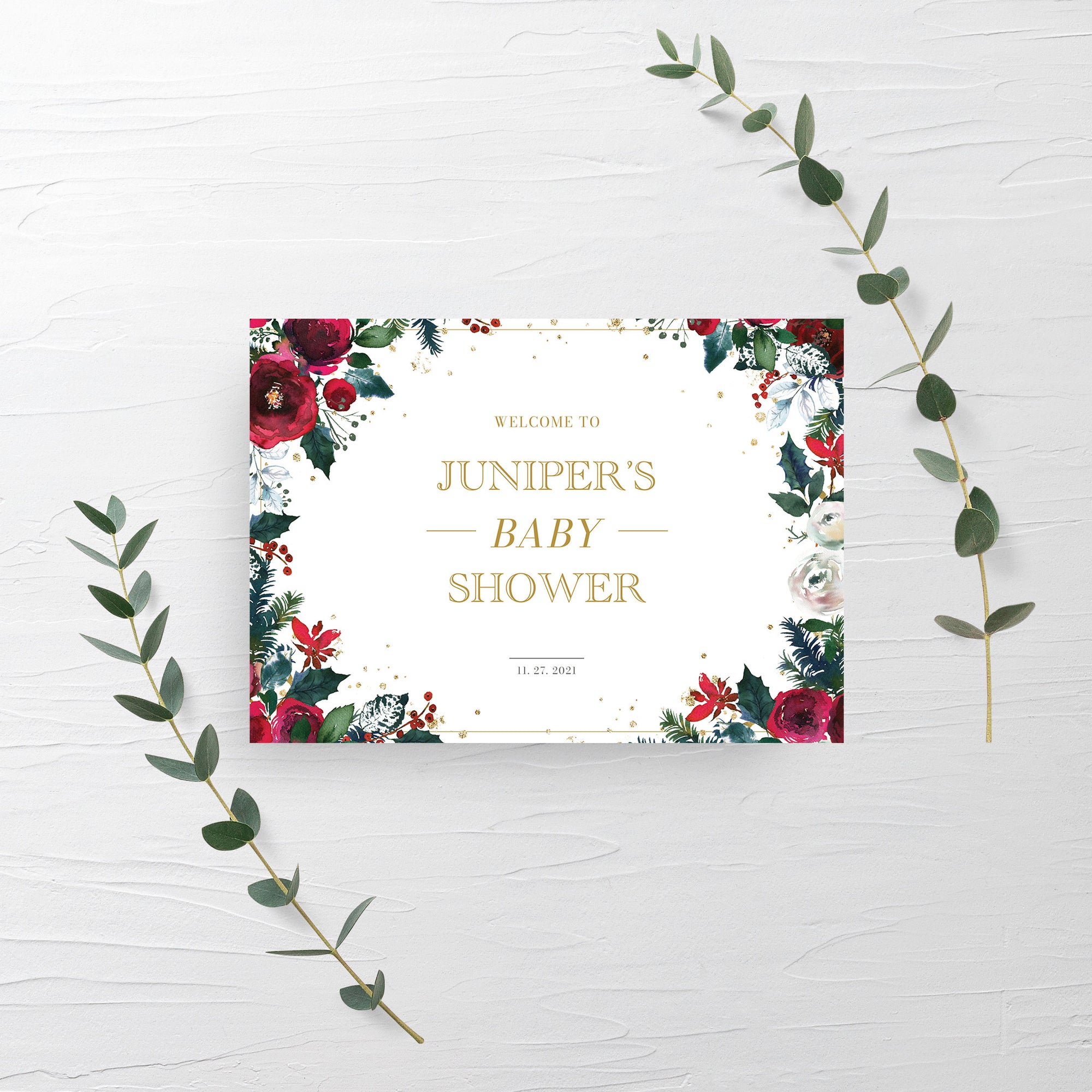 This Christmas baby shower welcome sign is available as an INSTANT DOWNLOAD editable template. Edit right in your browser using the online program, Templett. No software to download or fonts to install and you can even try it out before you buy!