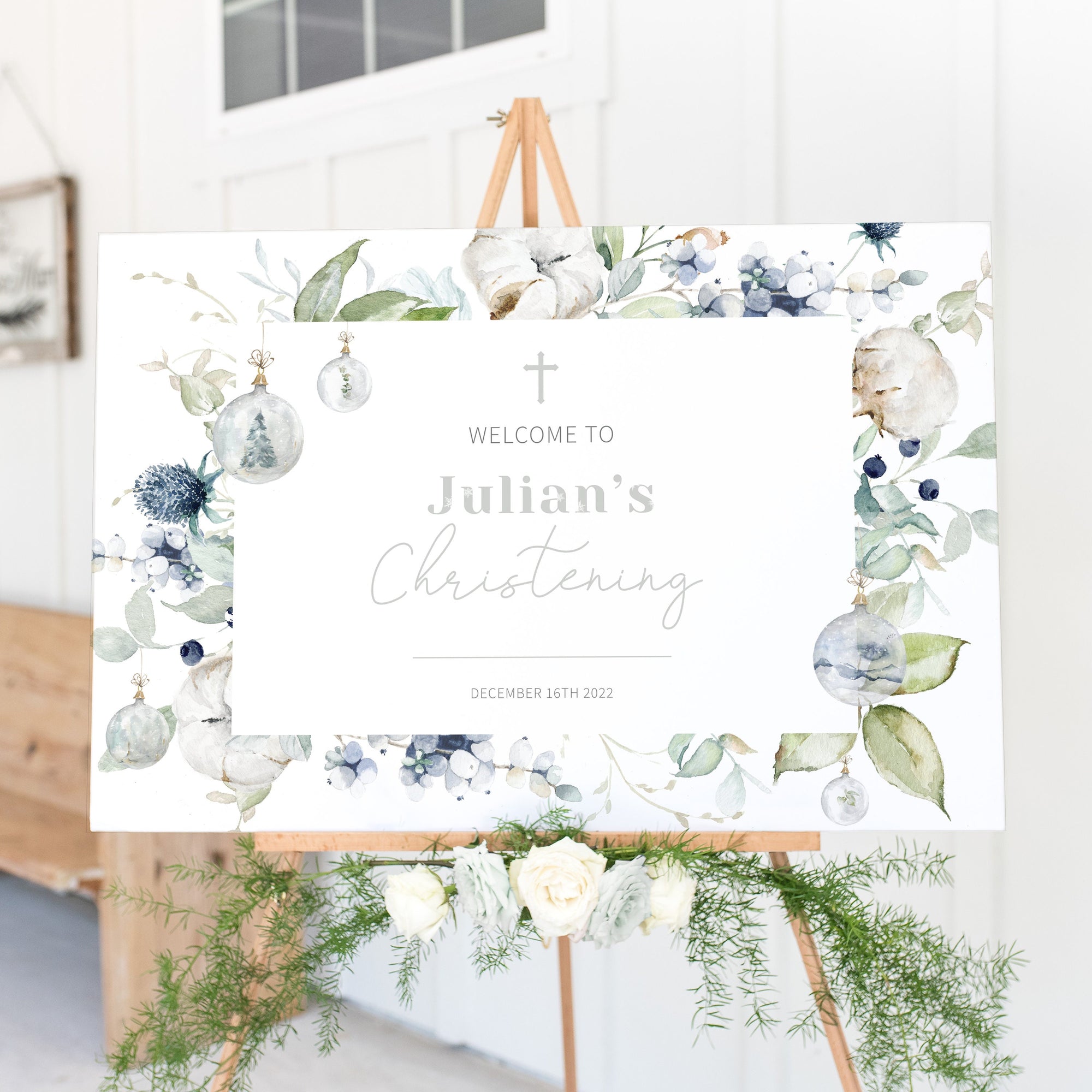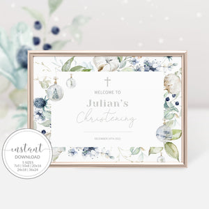 Christmas Christening Welcome Sign Template, Printable Pastel Winter Large Welcome Sign, Editable INSTANT DOWNLOAD - AW100