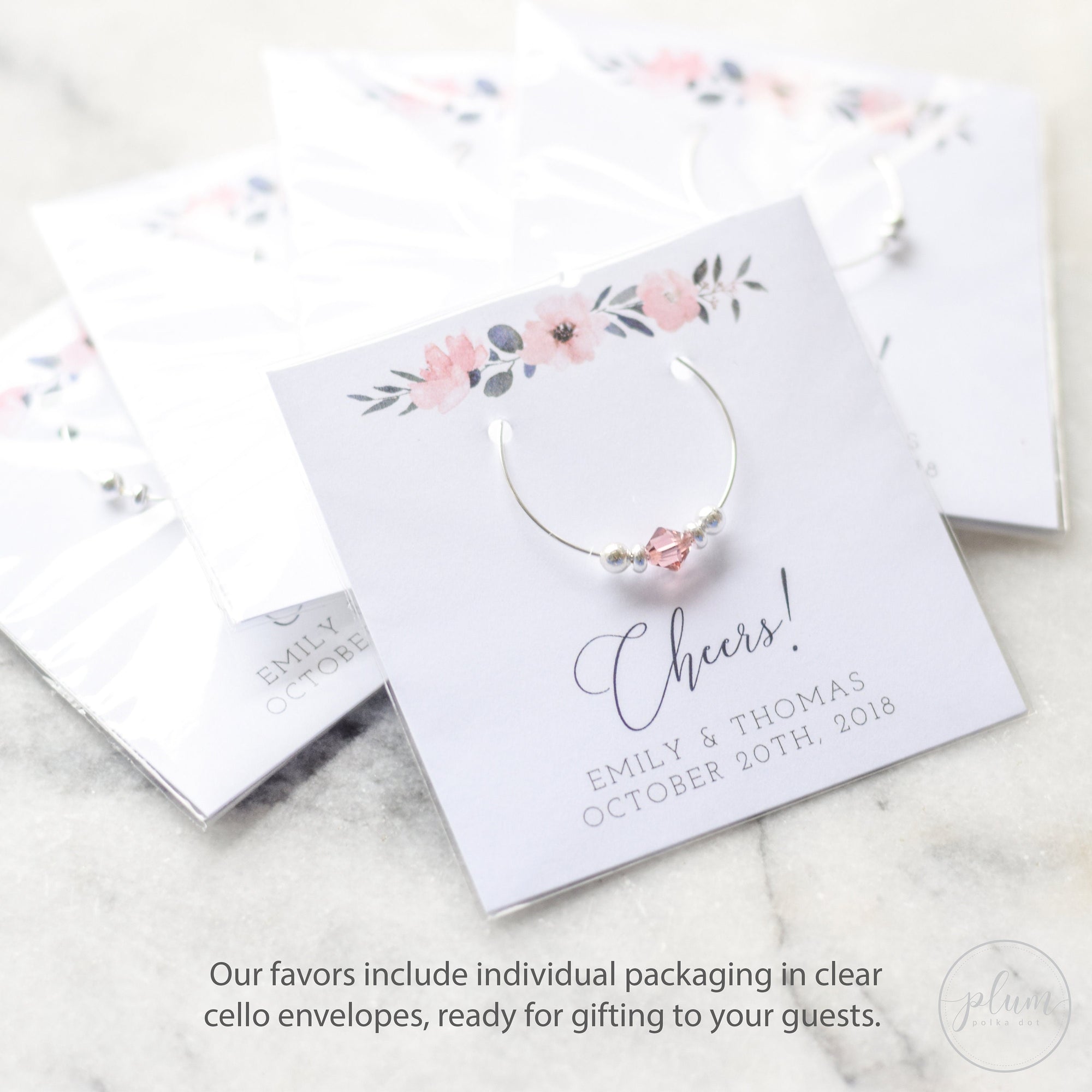 Each Swarovski crystal charm comes affixed to a card and packaged in a clear cello envelope, perfect for gifting to your guests.