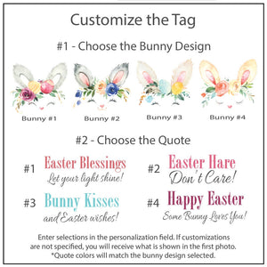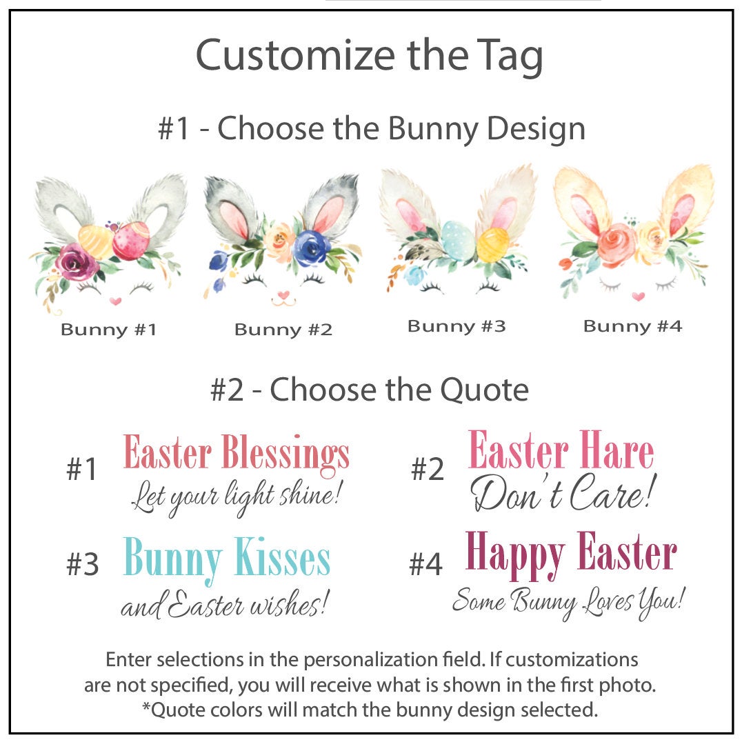 You can customize the bunny design and quote on the tags. Enter customizations in the personalization field (see photo #2)