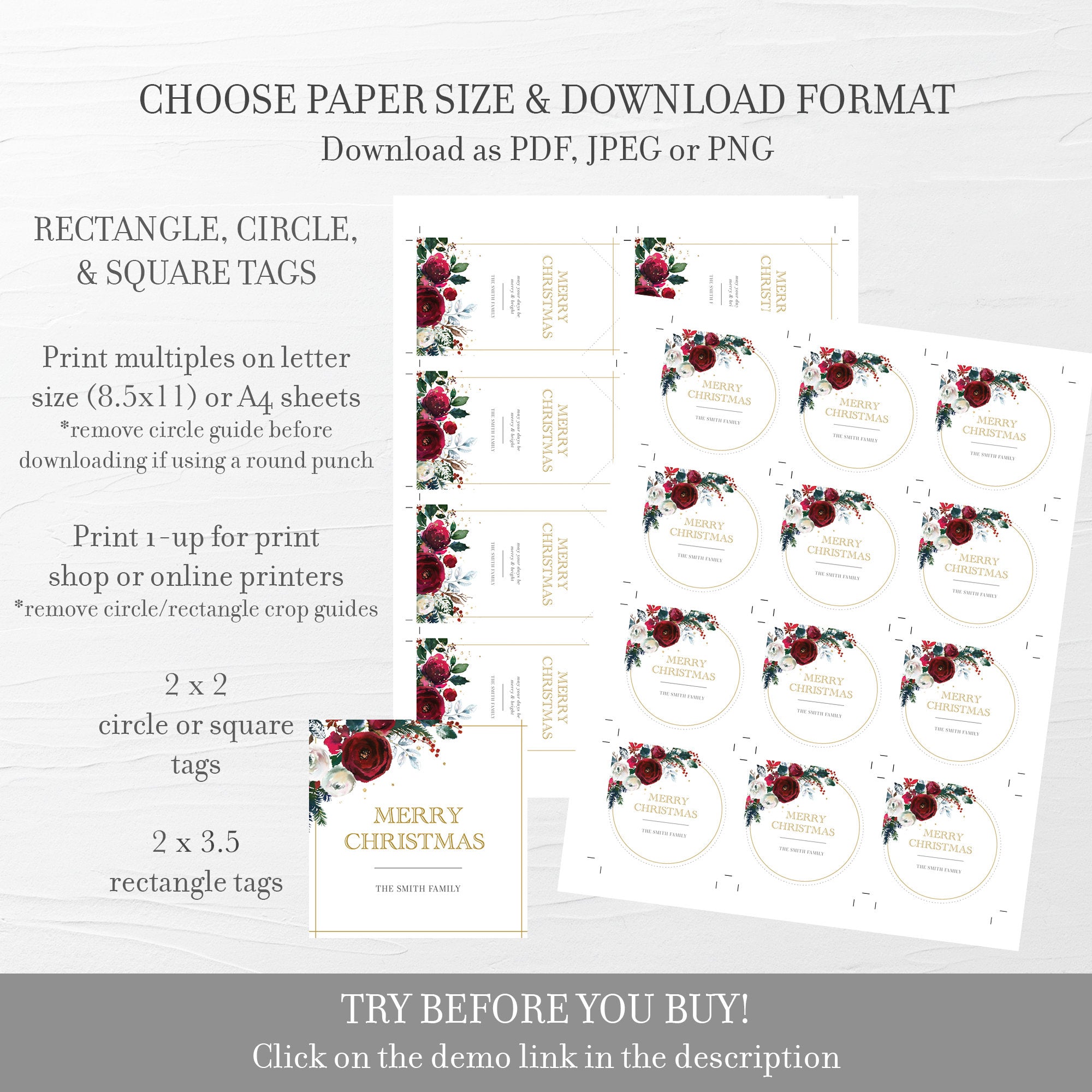 Christmas Gift Tags Template, Printable To From Tags, Round Square or Rectangle, Editable INSTANT DOWNLOAD - CG100