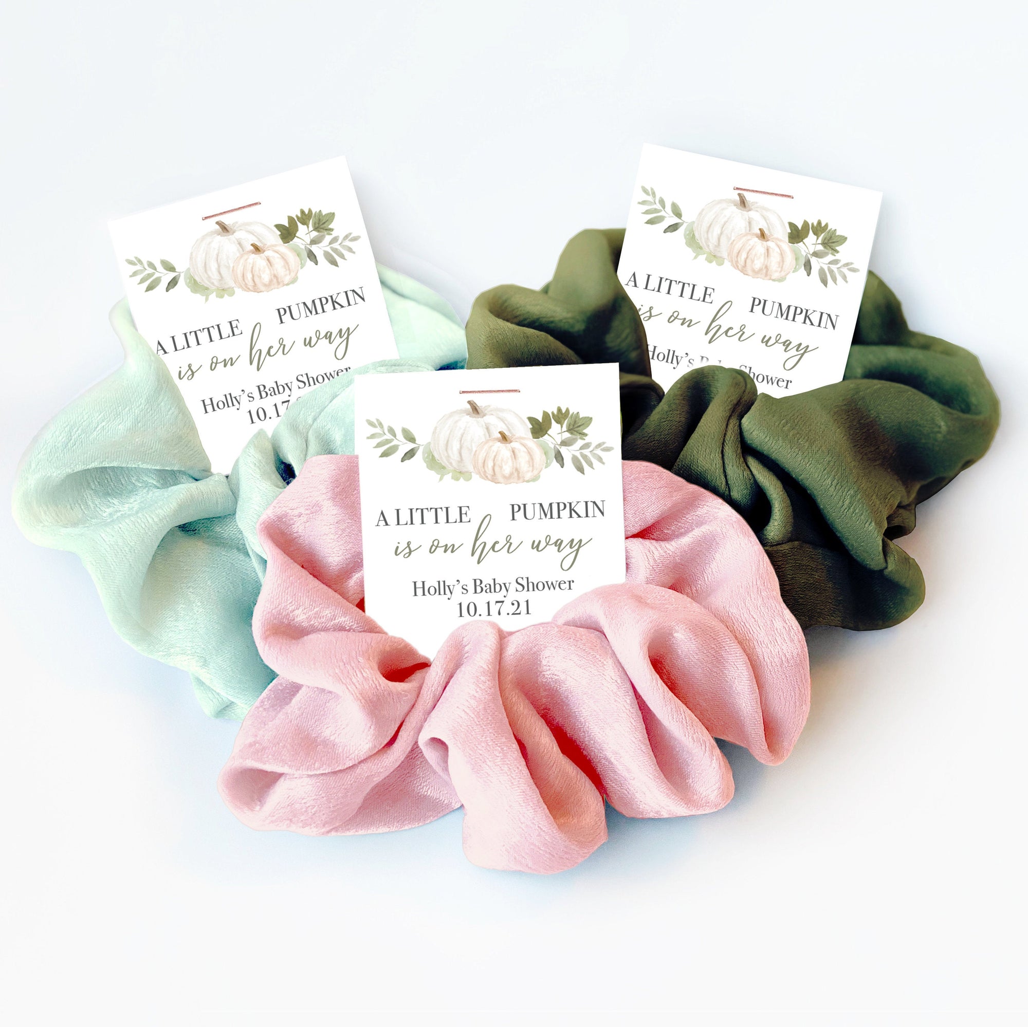 Our scrunchie favors are a trendy and unique way to say thank you to your guests! They will love receiving a take home gift that is both stylish and useful. Every time they throw their hair up, they will remember the awesome time they had celebrating the sweet new addition.