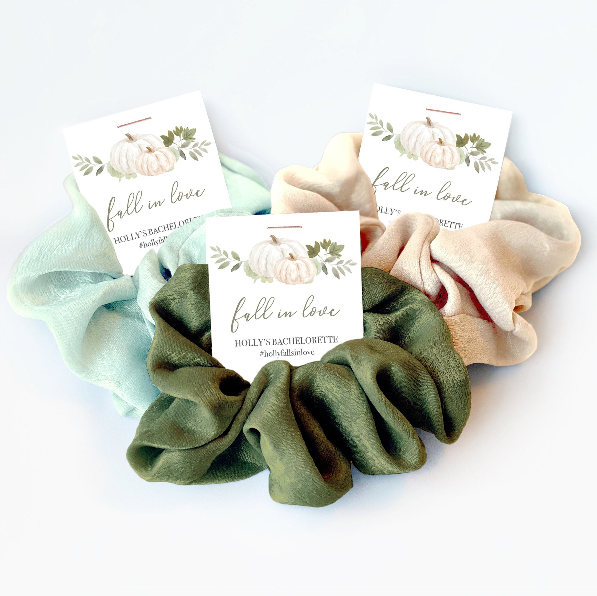 Fall Greenery Pumpkin Bachelorette Party Favors, Fall In Love, Hair Scrunchie - PG100