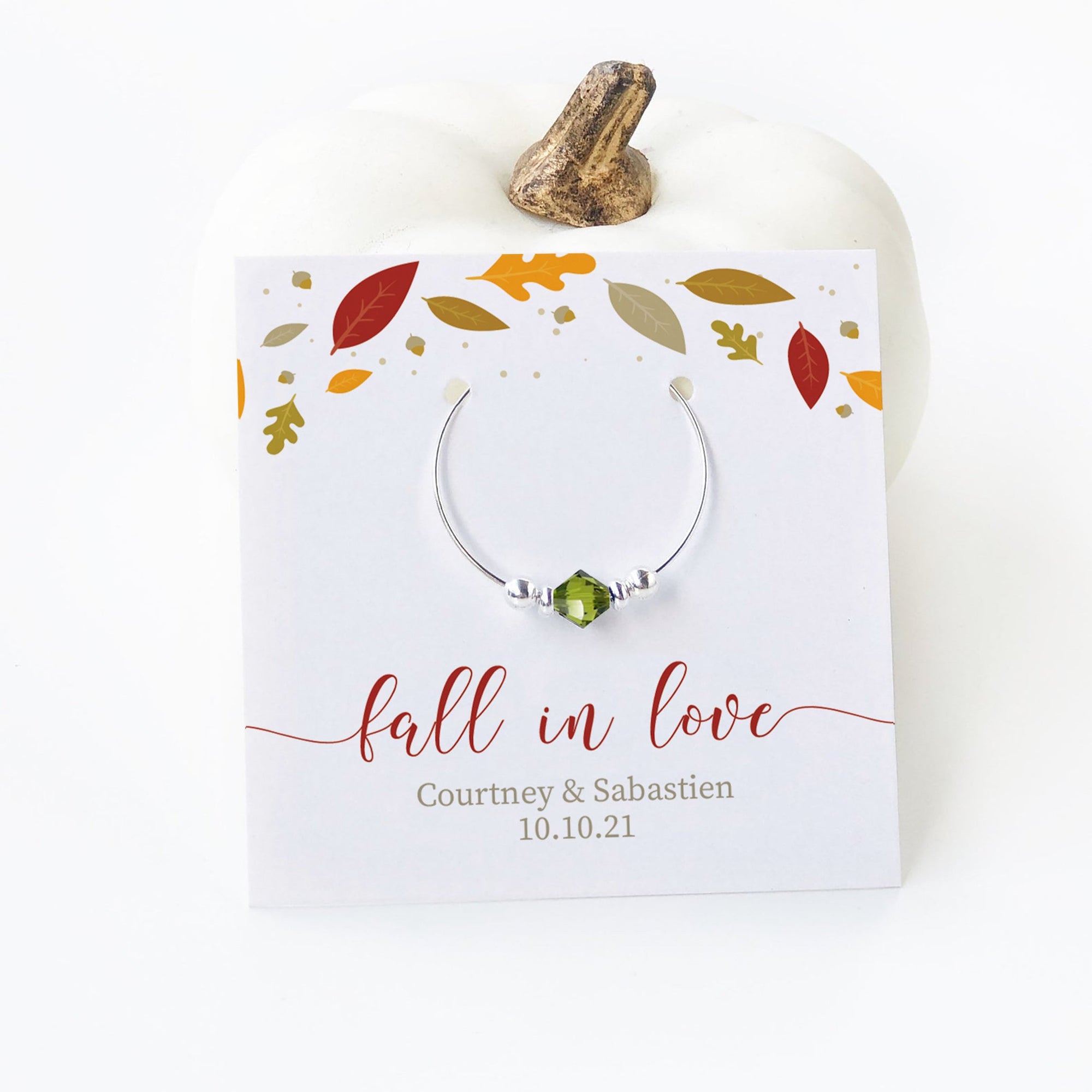 Fall Leaves Wedding Favors, Fall In Love Thank You Gift, Swarovski Crystal Wine Charm - FL100