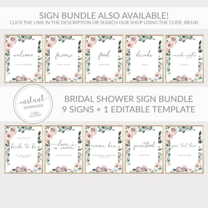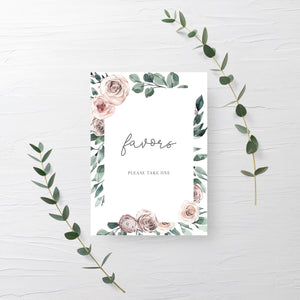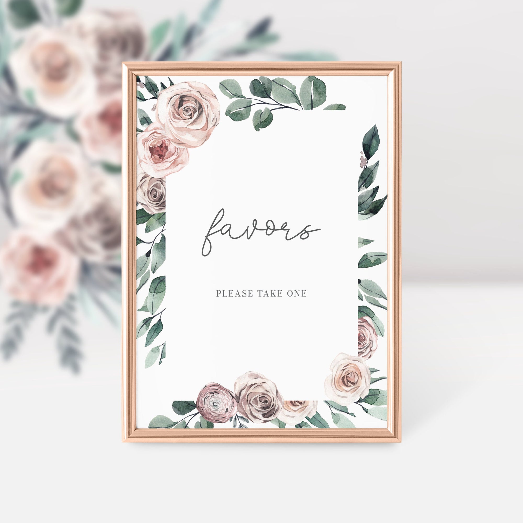 Boho Rose Favors Sign Printable, INSTANT DOWNLOAD - BR100