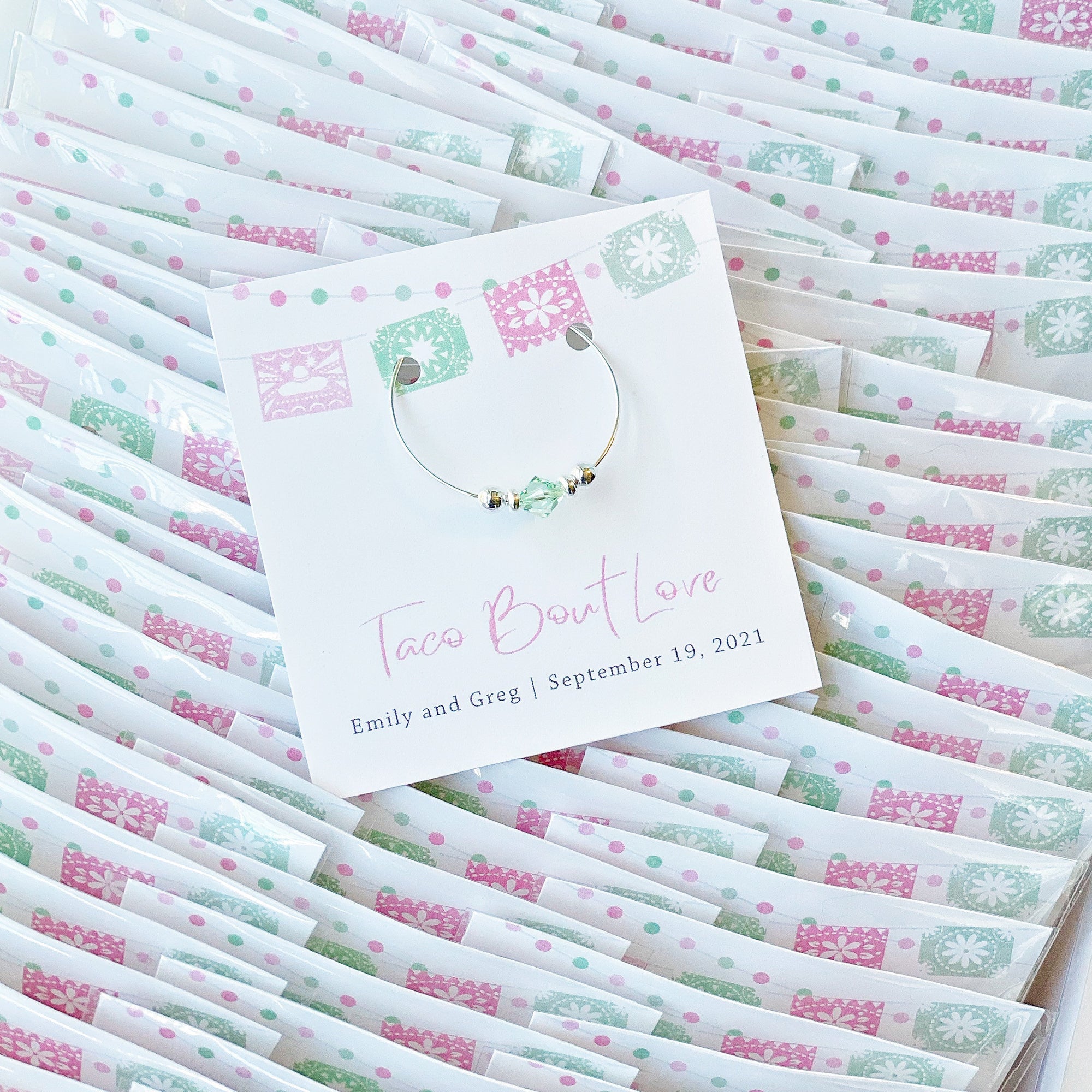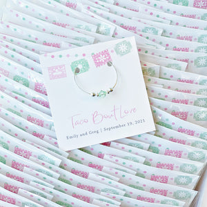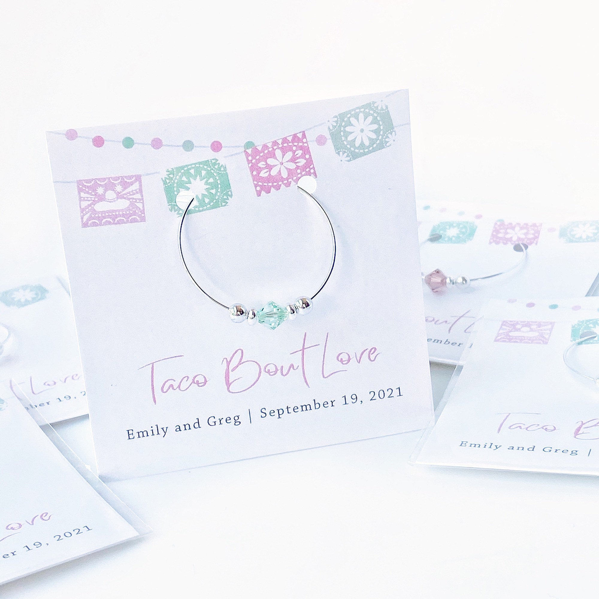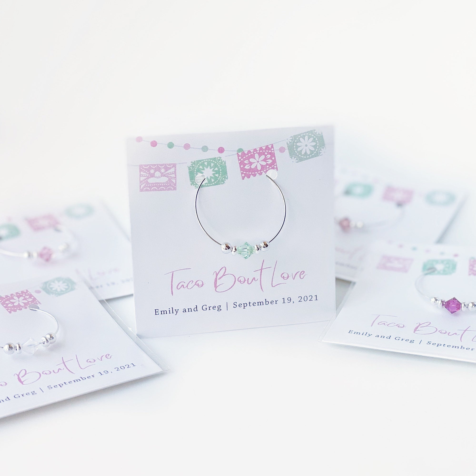 Taco Bout Love!! Our Swarovski crystal wine charm favors are the perfect giveaway for your fiesta themed bridal shower. A fun and unique way to say 'thank you' to your guests. Every time they use the charms, they will think of the fabulous details and awesome time they had in anticipation of the big day!