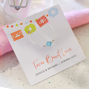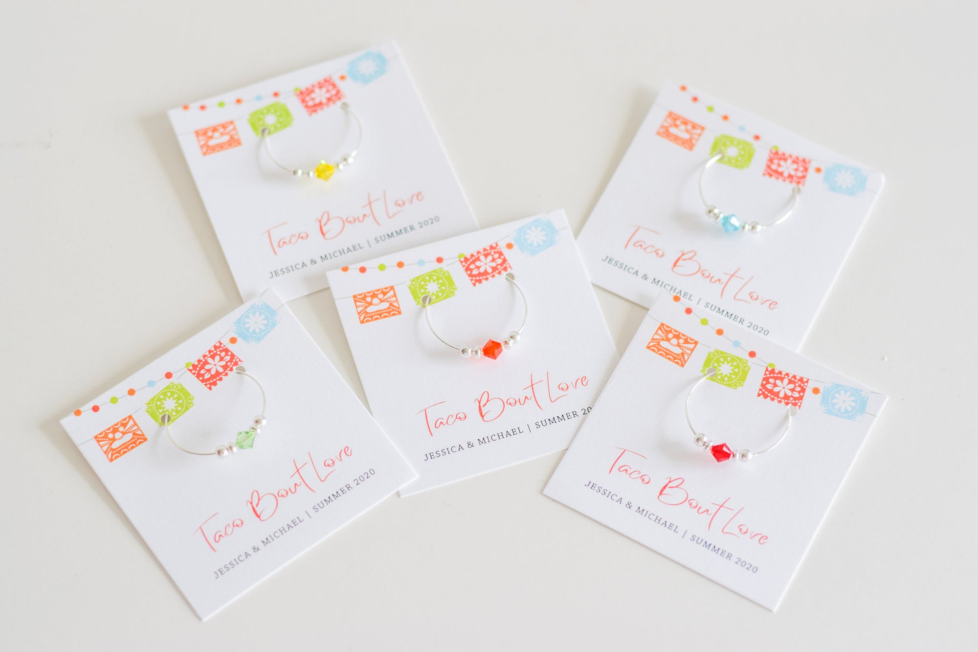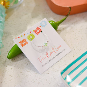 Taco Bout Love!! Our Swarovski crystal wine charm favors are the perfect giveaway for your fiesta themed bridal shower. A fun and unique way to say 'thank you' to your guests. Every time they use the charms, they will think of the fabulous details and awesome time they had in anticipation of the big day!