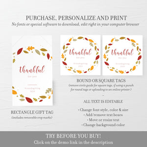 Friendsgiving Gift Tag Template, Printable Thankful For You Favors Tag, Round Square or Rectangle, Editable INSTANT DOWNLOAD - FL100