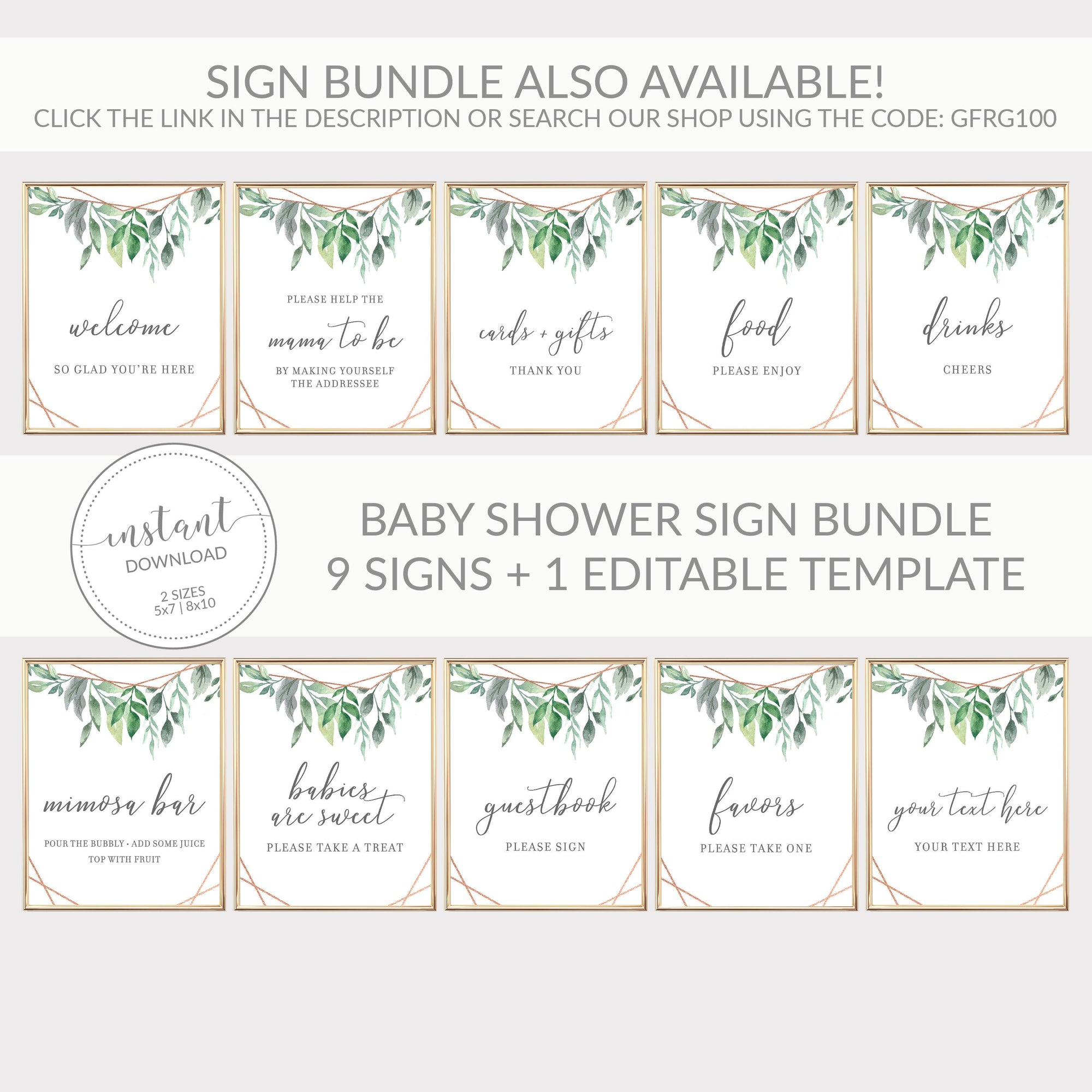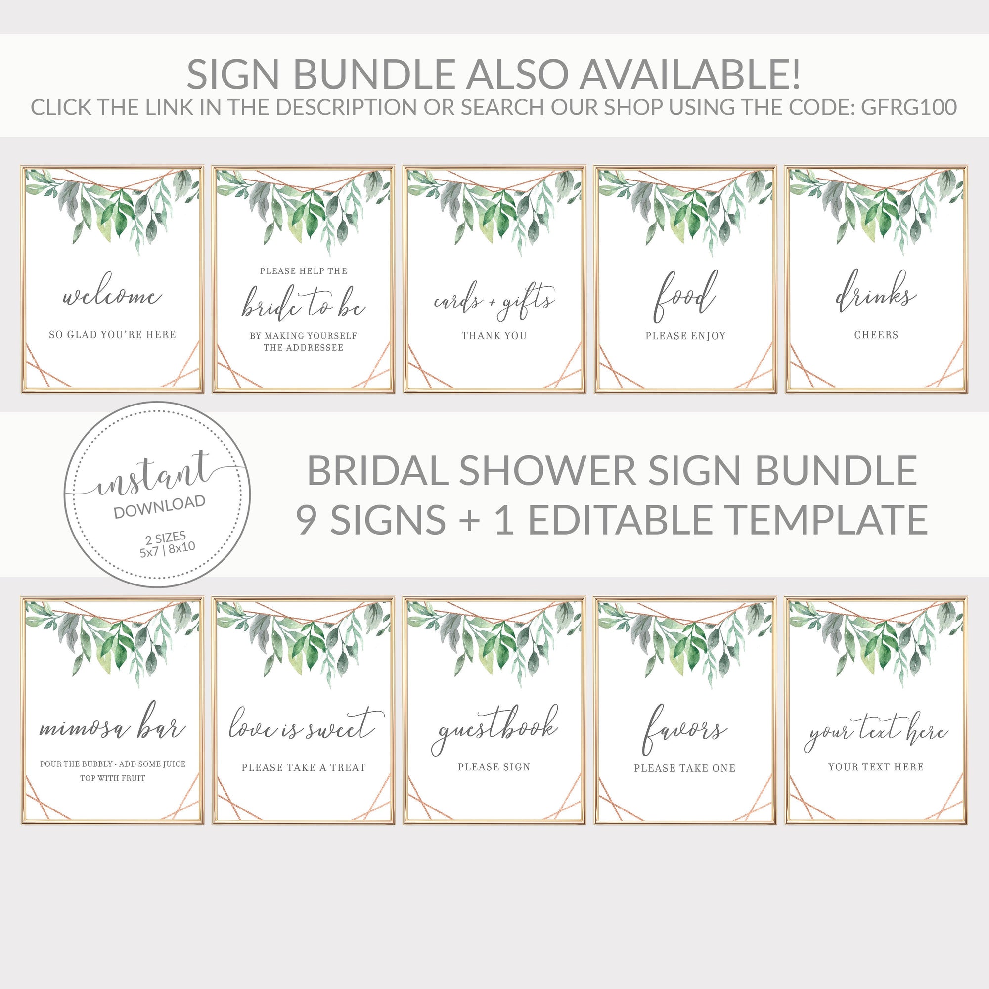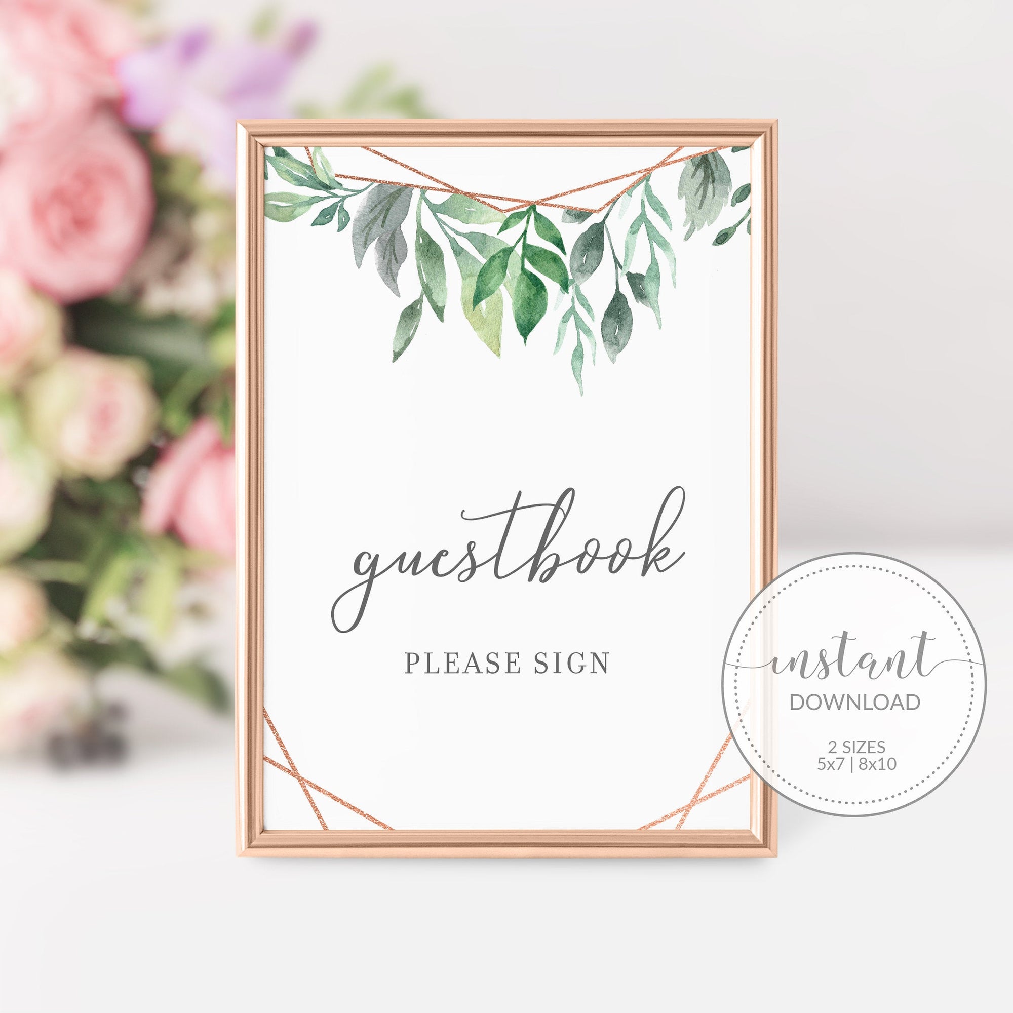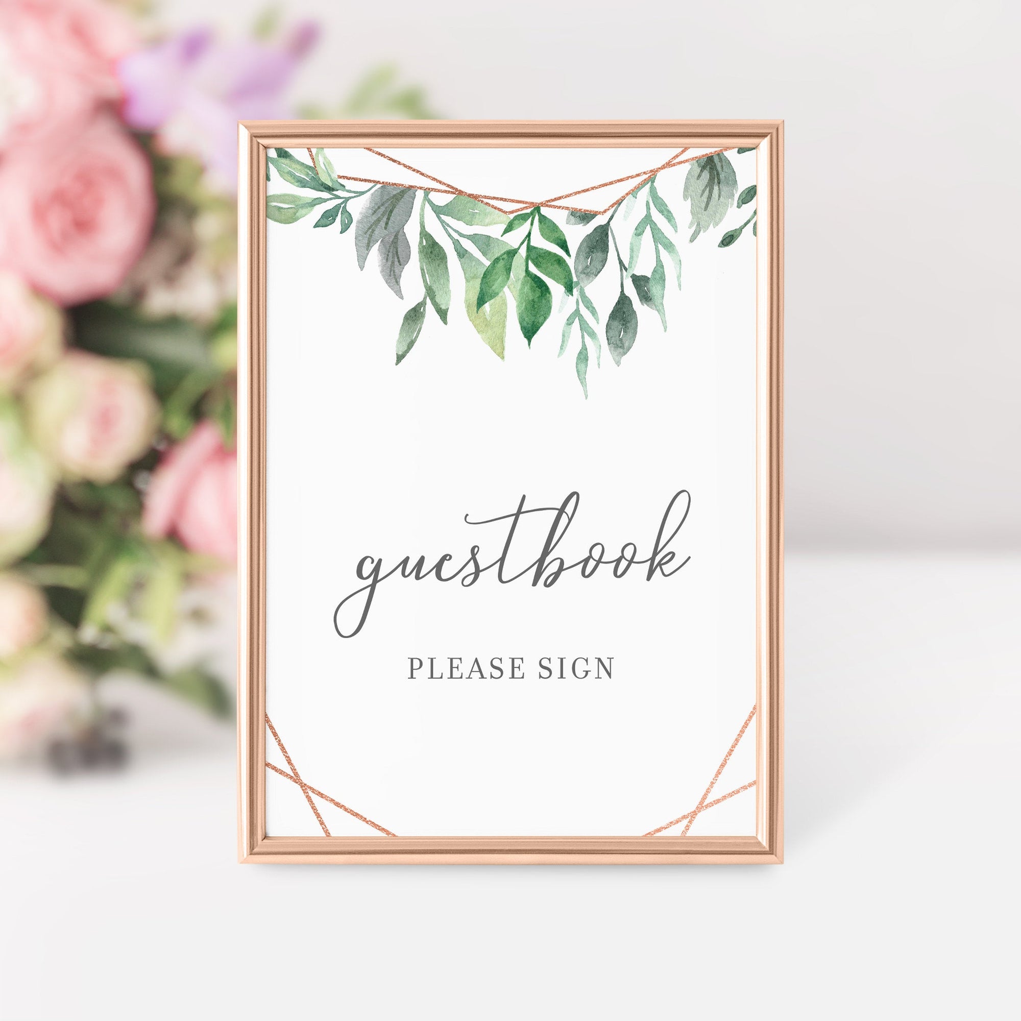 Geometric Rose Gold Greenery Guestbook Sign, INSTANT DOWNLOAD - GFRG100