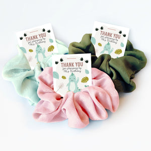Throw your hair up and have some fun! Our scrunchie favors are a trendy and unique way to say thank you to your guests! They will love receiving a take home gift that is both stylish and useful. Every time they throw their hair up, they will remember the awesome time they had celebrating the birthday girl or boy!