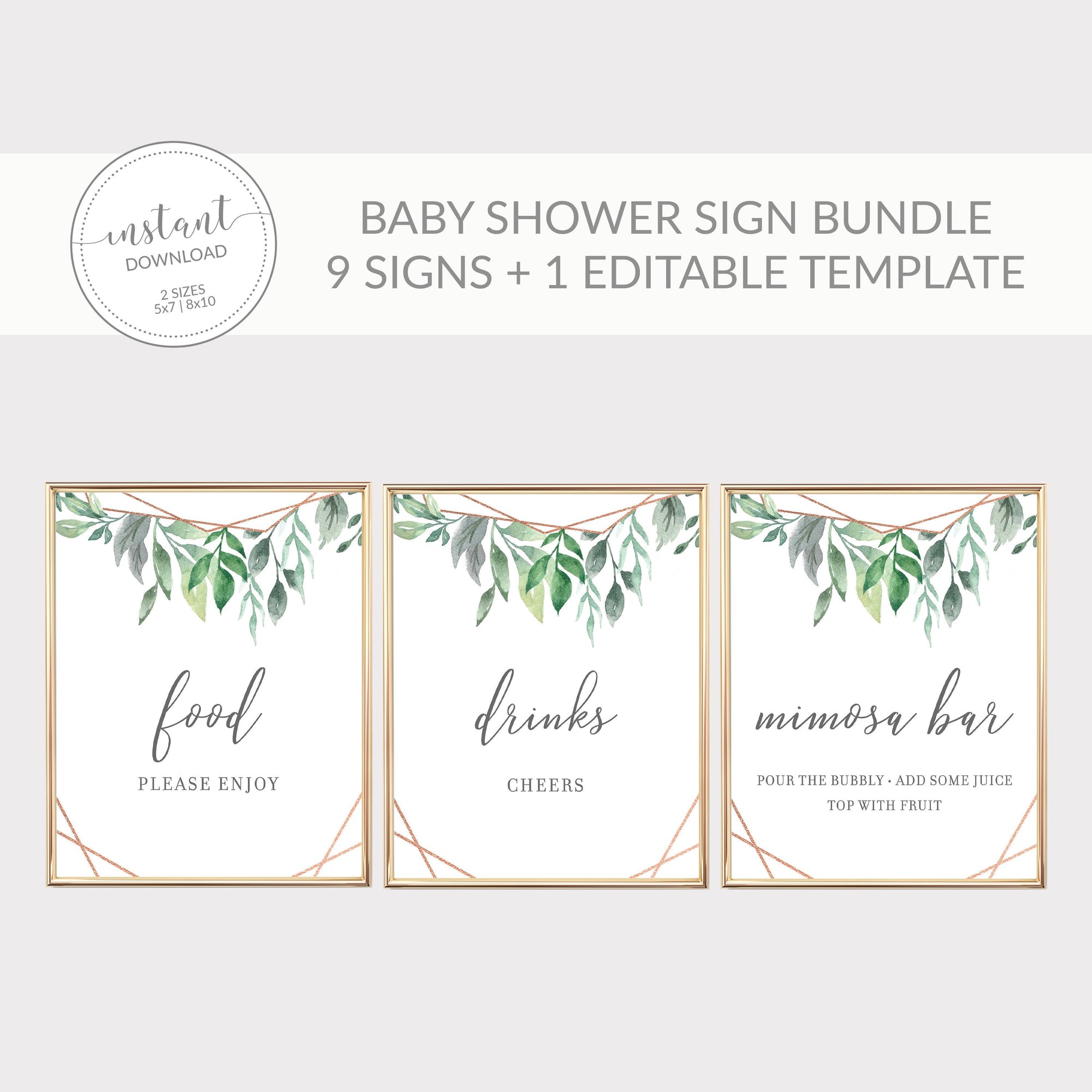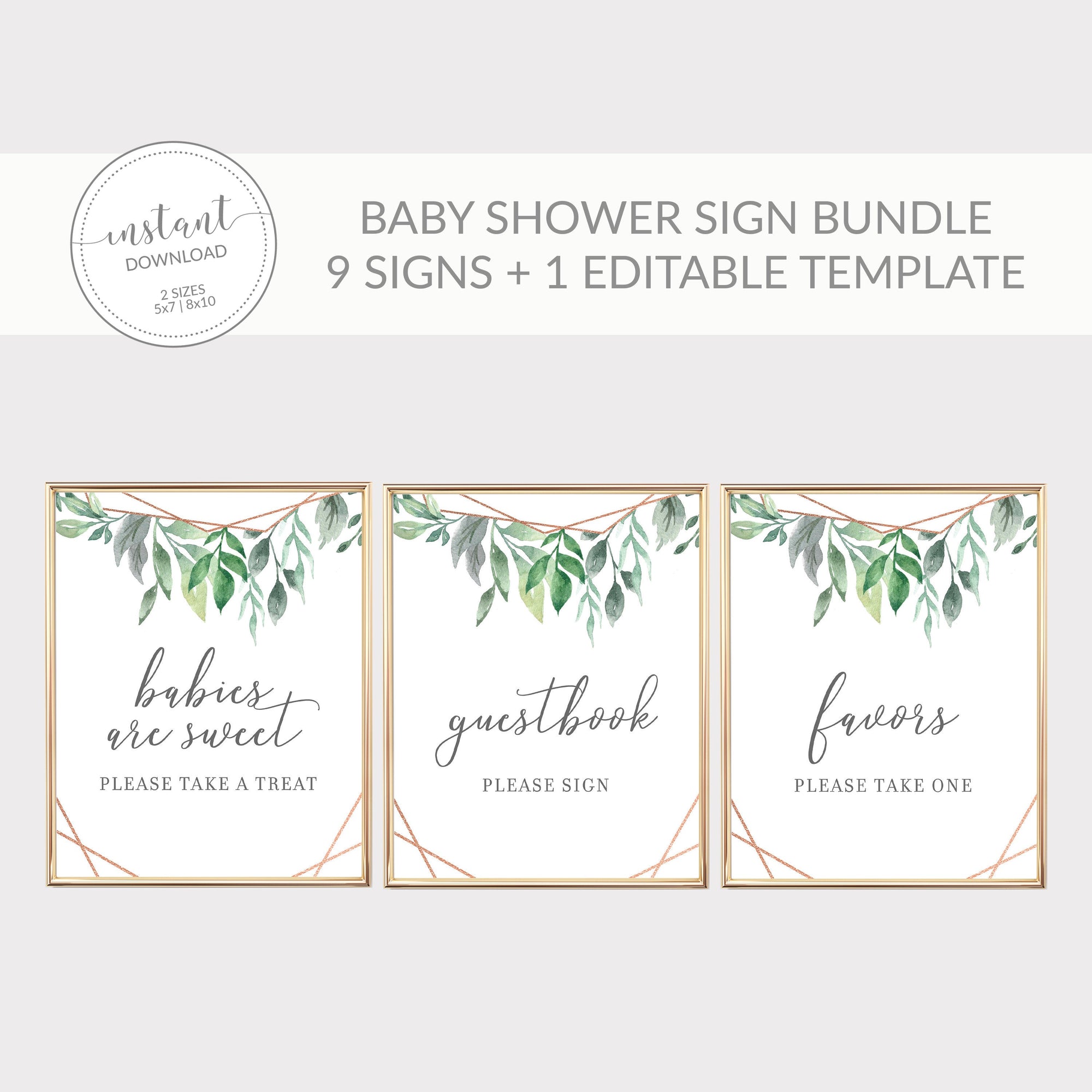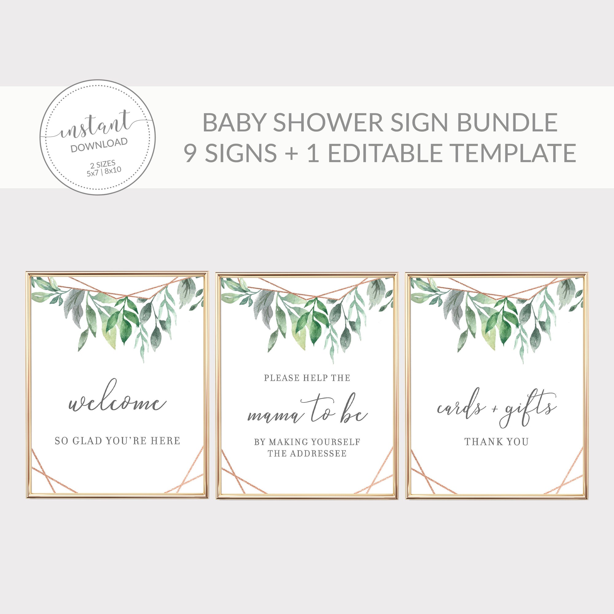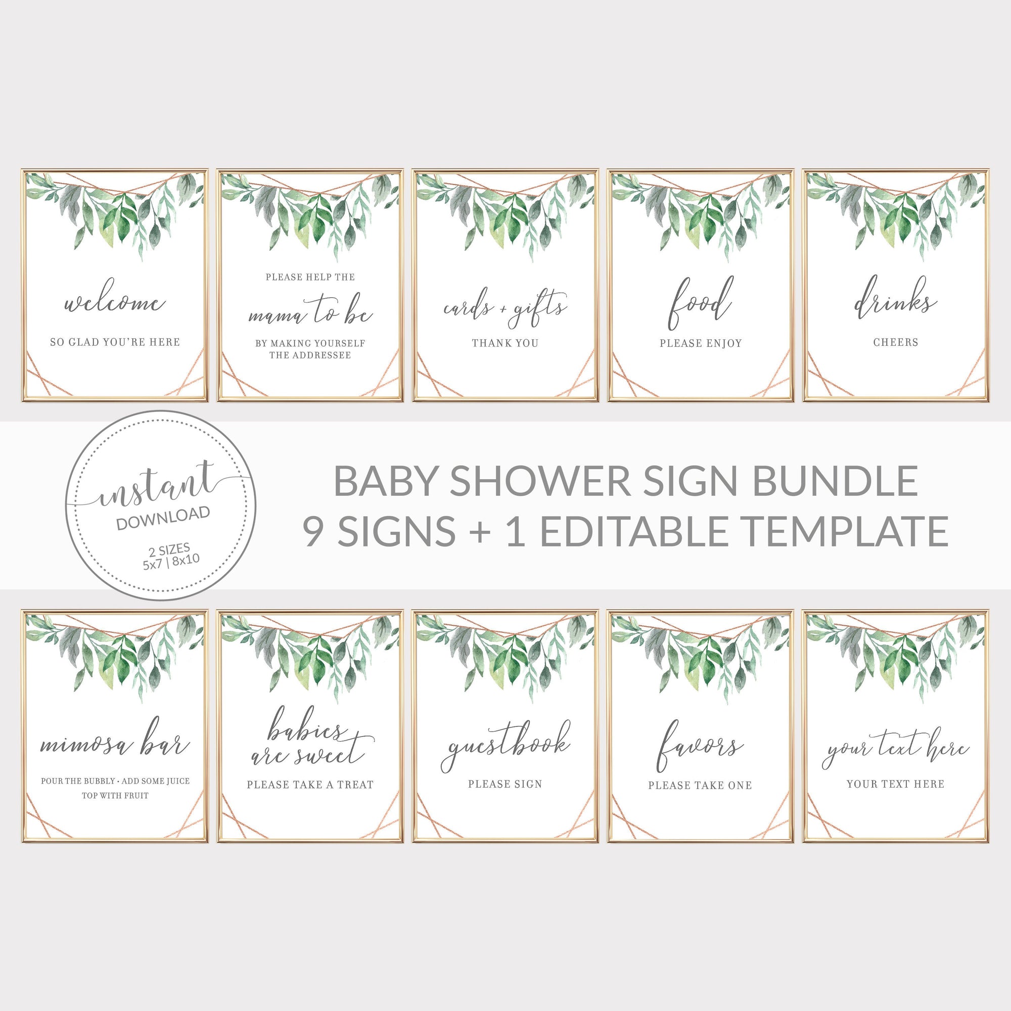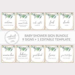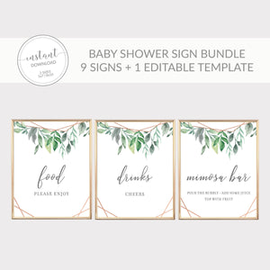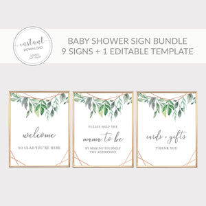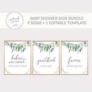 Geometric Rose Gold Greenery Baby Shower Sign Bundle Template, Printable Editable INSTANT DIGITAL DOWNLOAD - GFRG100
