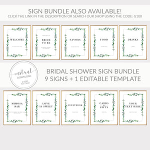 This greenery bridal shower invitation is available as an INSTANT DOWNLOAD editable template. Edit right in your browser using the online program, Templett. No software to download or fonts to install and you can even try it out before you buy!