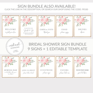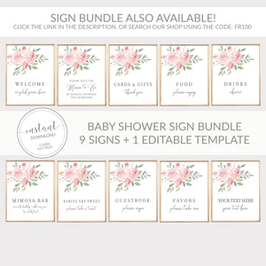 Blush Pink Floral Guestbook Sign Printable, INSTANT DOWNLOAD - FR100