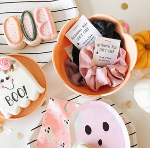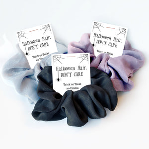 Halloween Hair Don't Care! Our scrunchies are always a huge hit. These unique Halloween favors are a perfect way to say "thank you" to your guests. Makes the perfect finishing touch to a Halloween Party, or a little gift for friends, classmates, or any special girls in your life! Trust me when I tell you that their parents will thank you for the non-sugary treat.