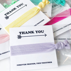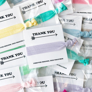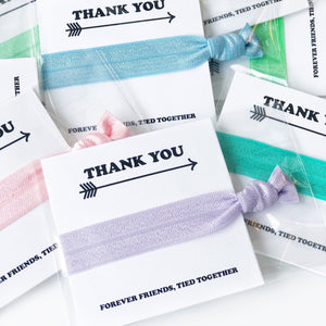 Send your guests home with something they will love! Always a huge hit, our hair ties are made with the highest quality elastic and are heat sealed to prevent fraying.
