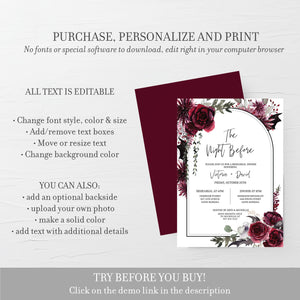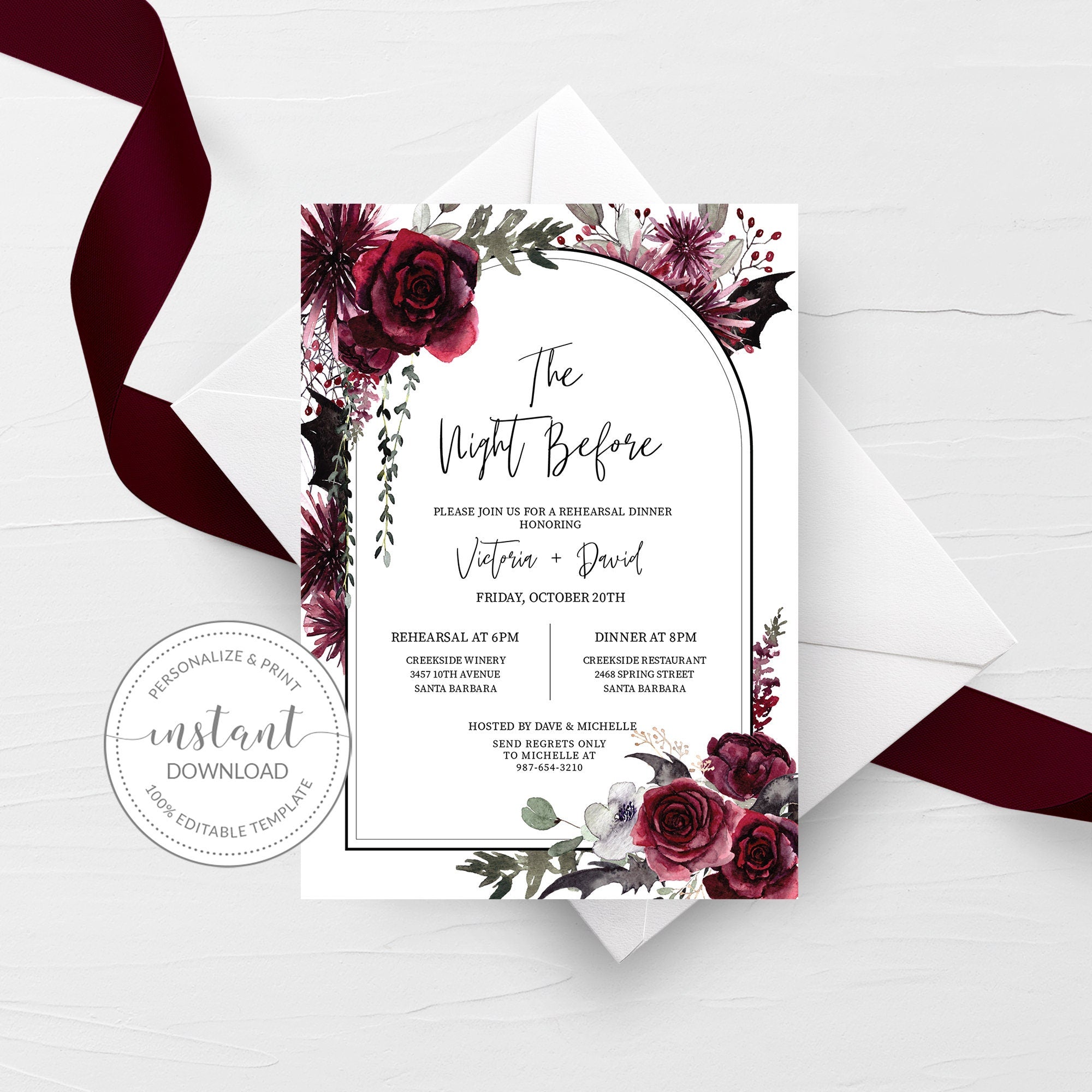 Halloween Wedding Rehearsal Dinner Invitation Template, Printable Rehearsal Dinner Invite, Editable INSTANT DOWNLOAD - H100