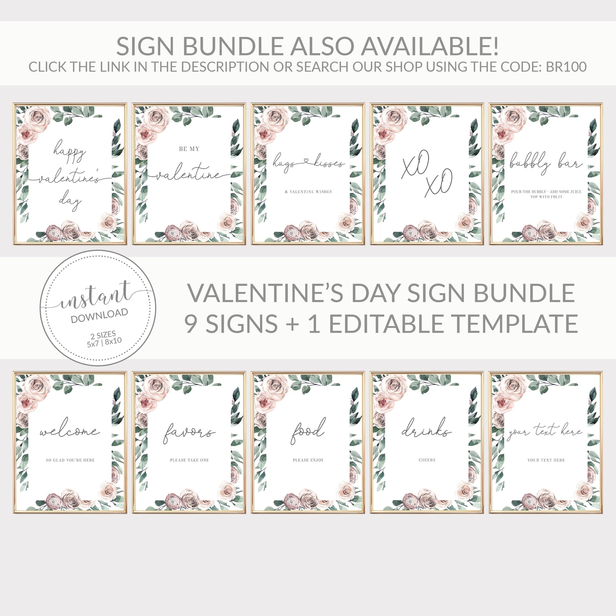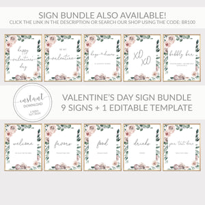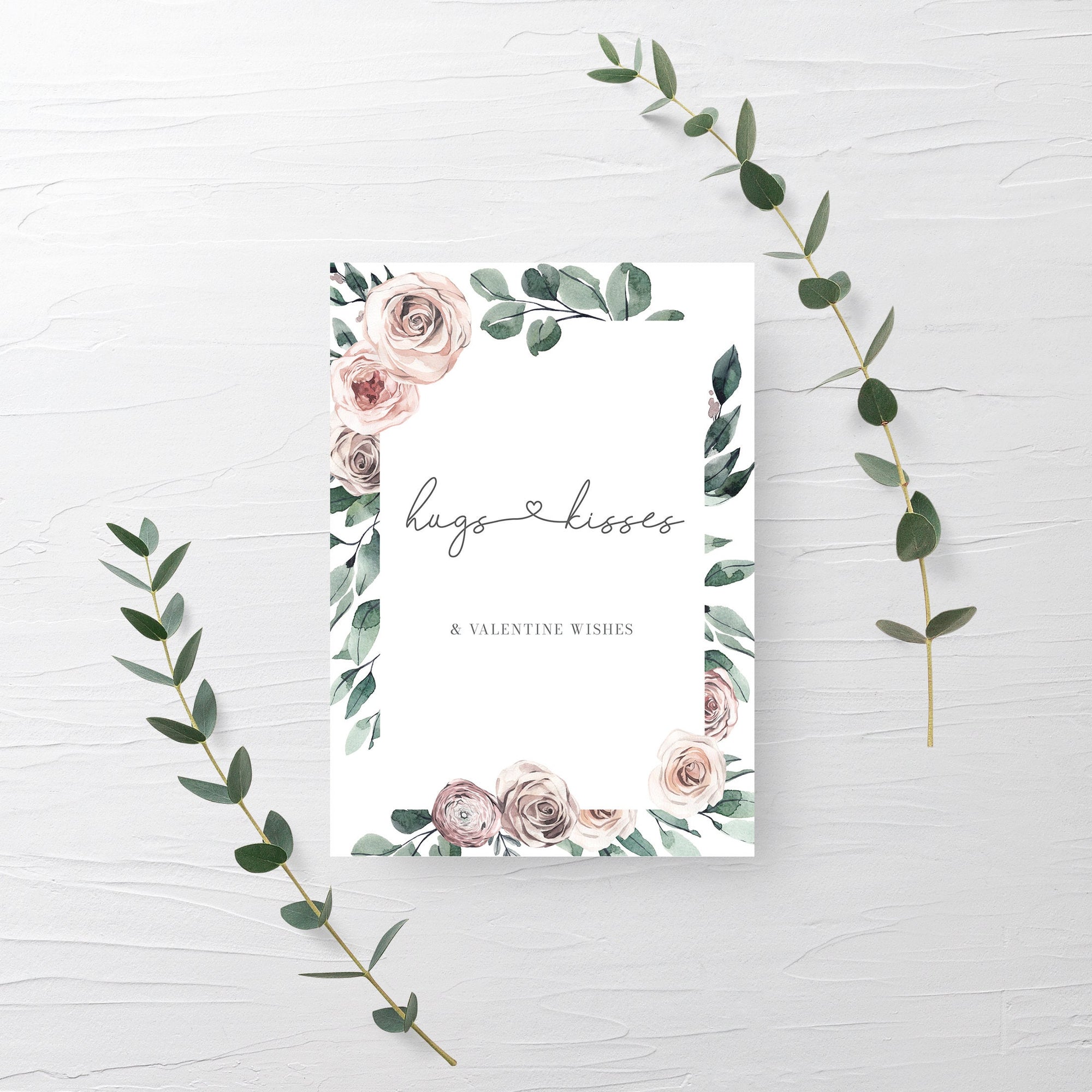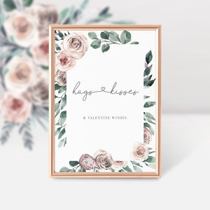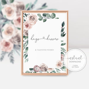 Boho Rose Hugs and Kisses Valentines Day Sign Printable, INSTANT DOWNLOAD - BR100