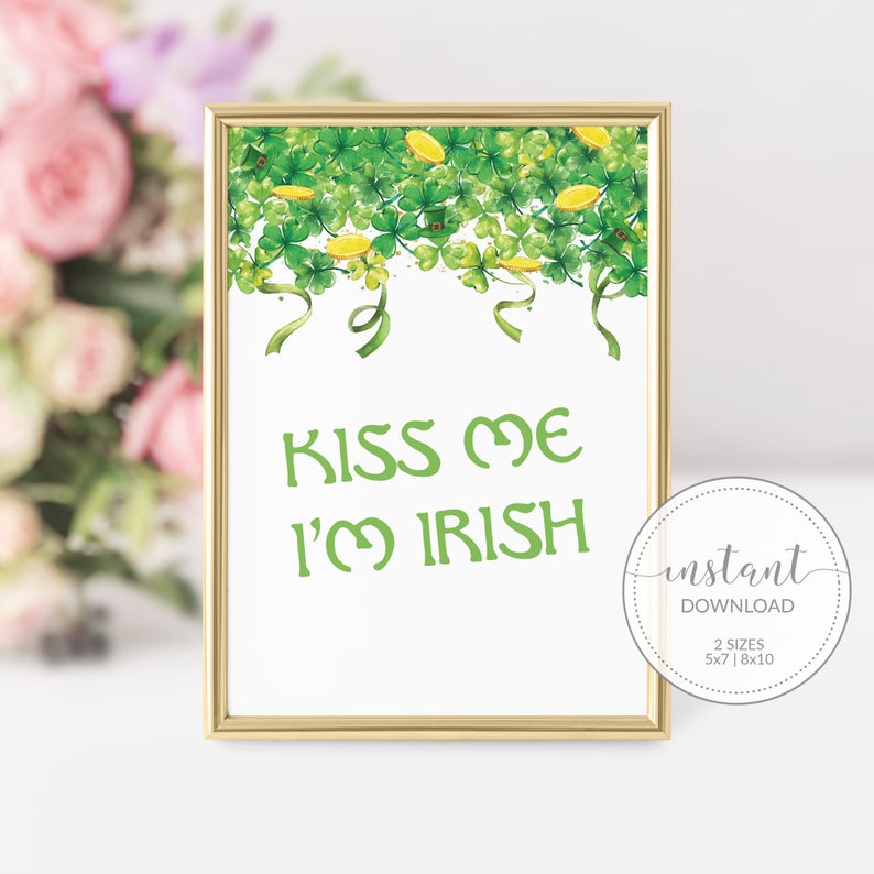 Kiss Me I'm Irish Sign Printable, St Patricks Day Decorations, INSTANT DOWNLOAD - SP100