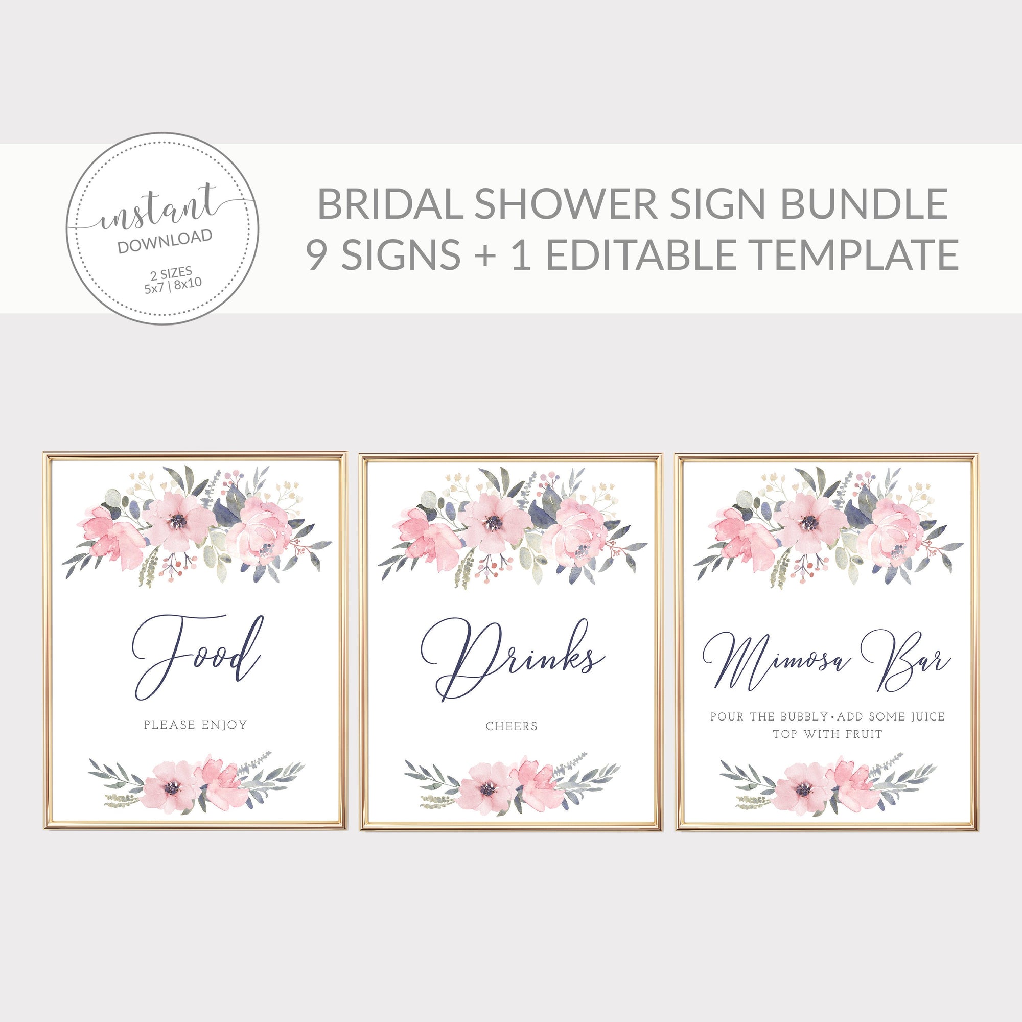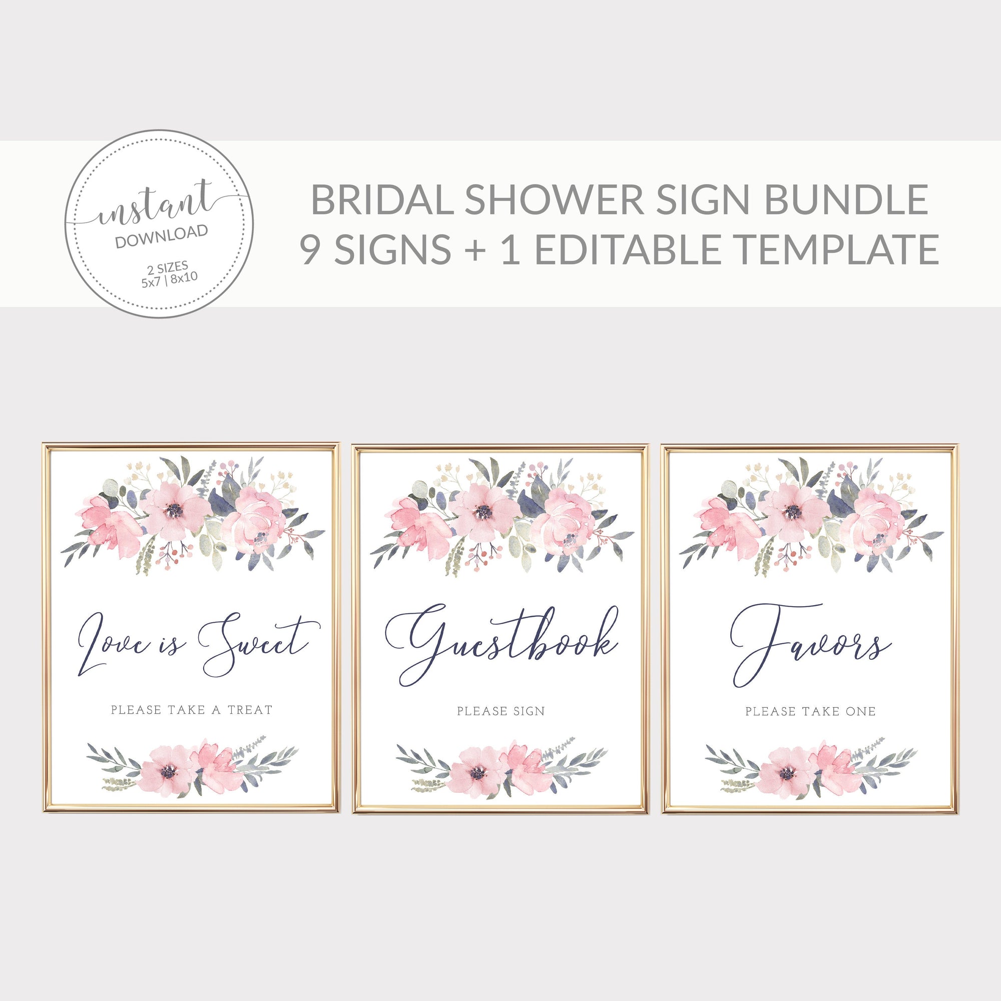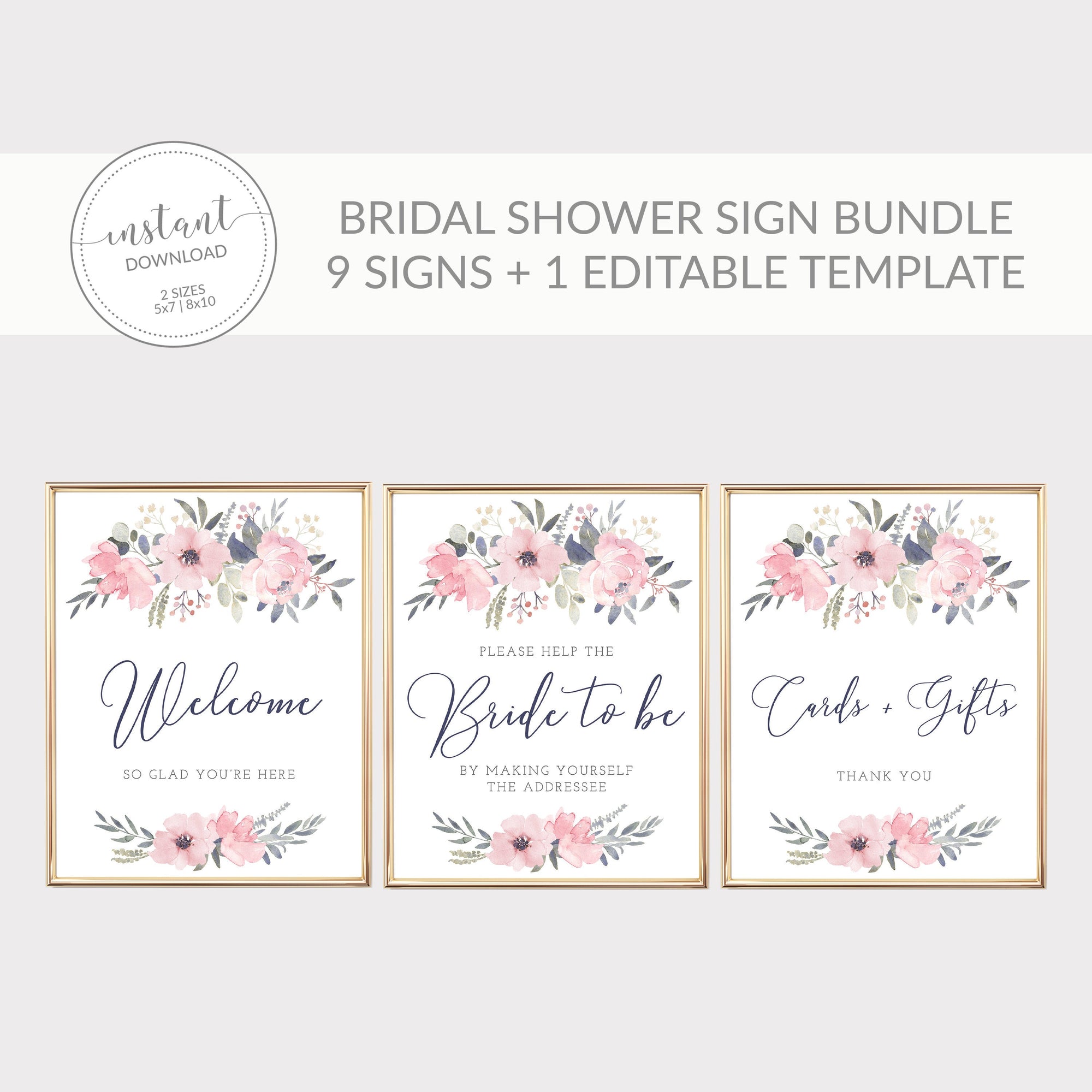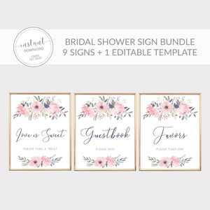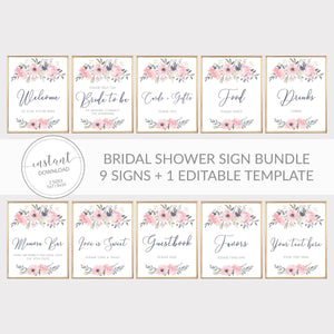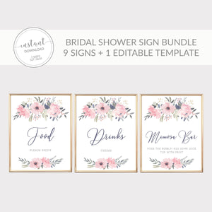 Navy and Blush Floral Bridal Shower Sign Bundle, Printable Editable INSTANT DOWNLOAD - NB100