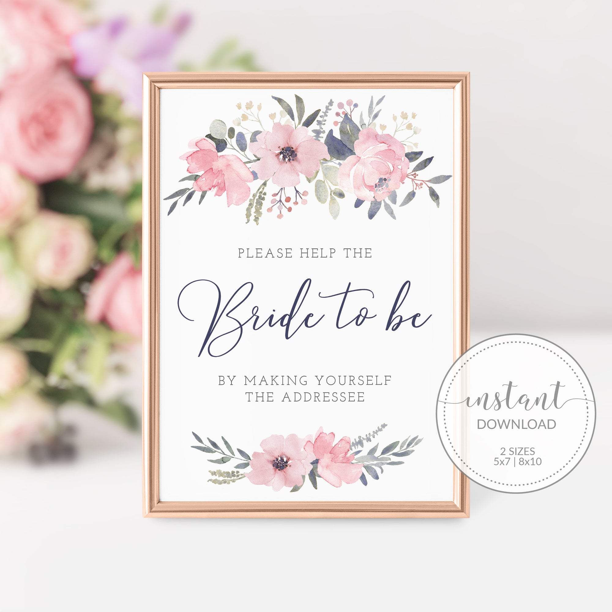 Navy and Blush Floral Bridal Shower Address an Envelope Sign, Printable Help The Bride To Be Sign, INSTANT DOWNLOAD - NB100