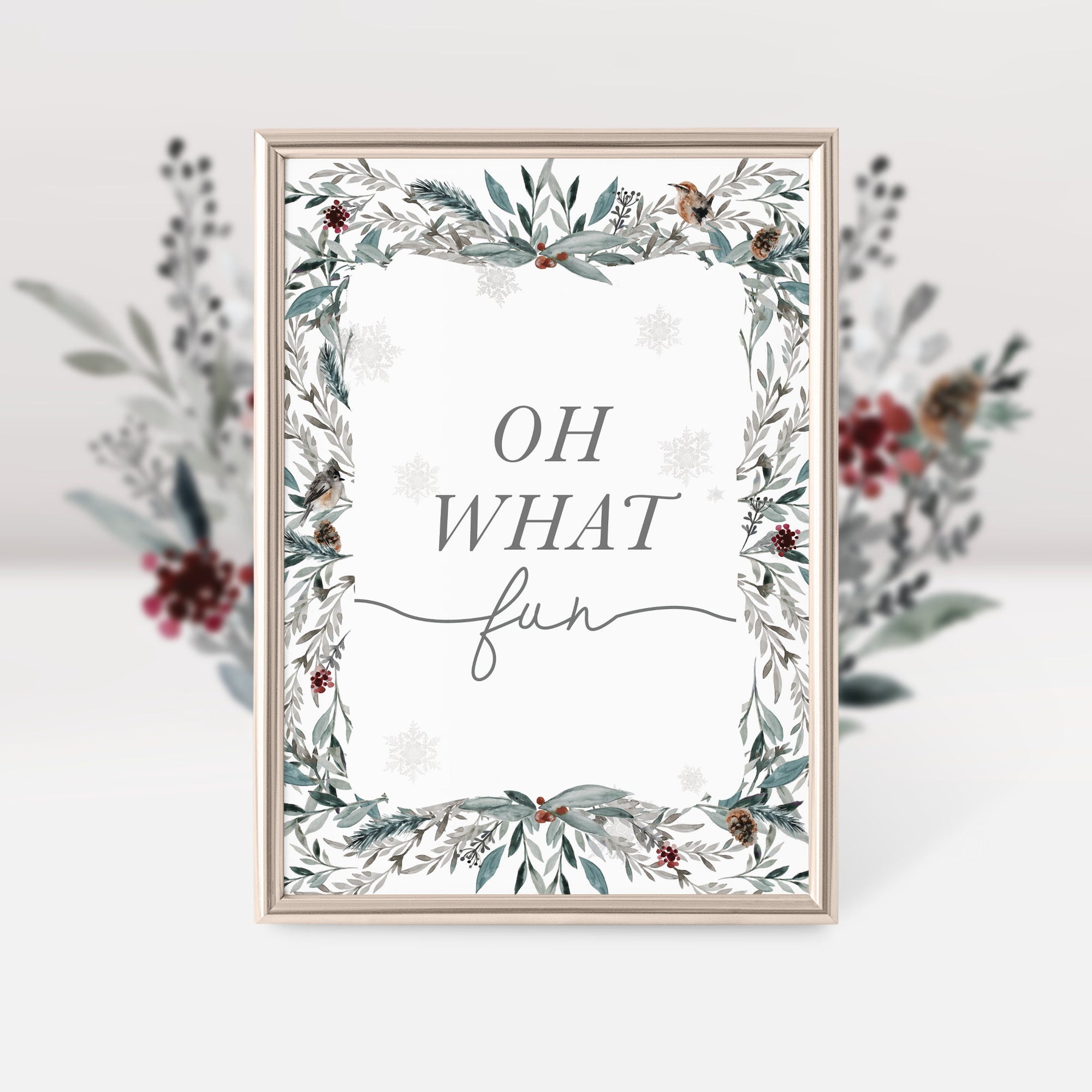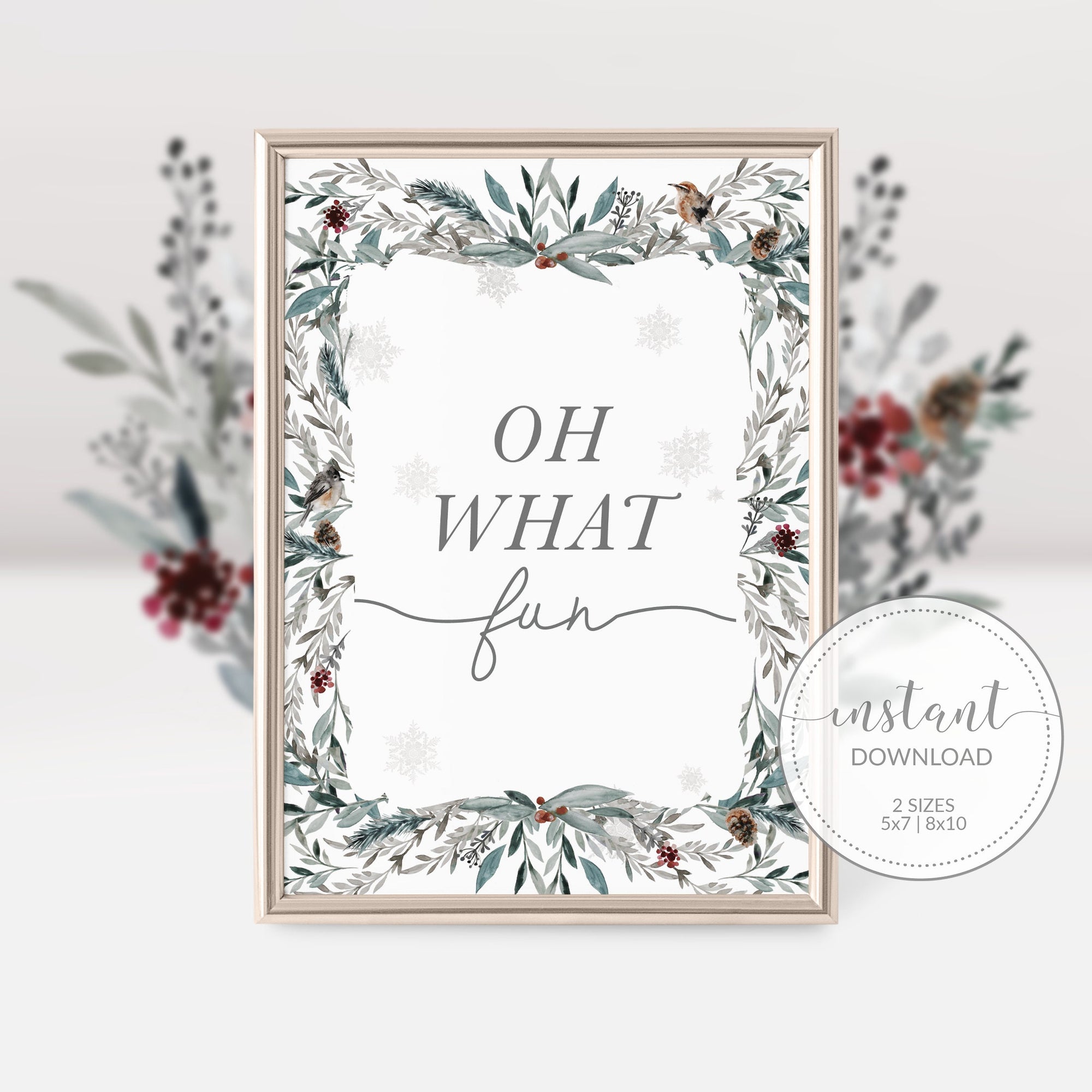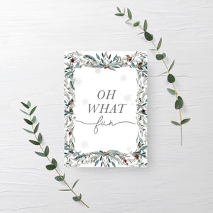 Oh What Fun Christmas Sign Printable, Winter Woodland Holiday Decor, INSTANT DOWNLOAD FB100