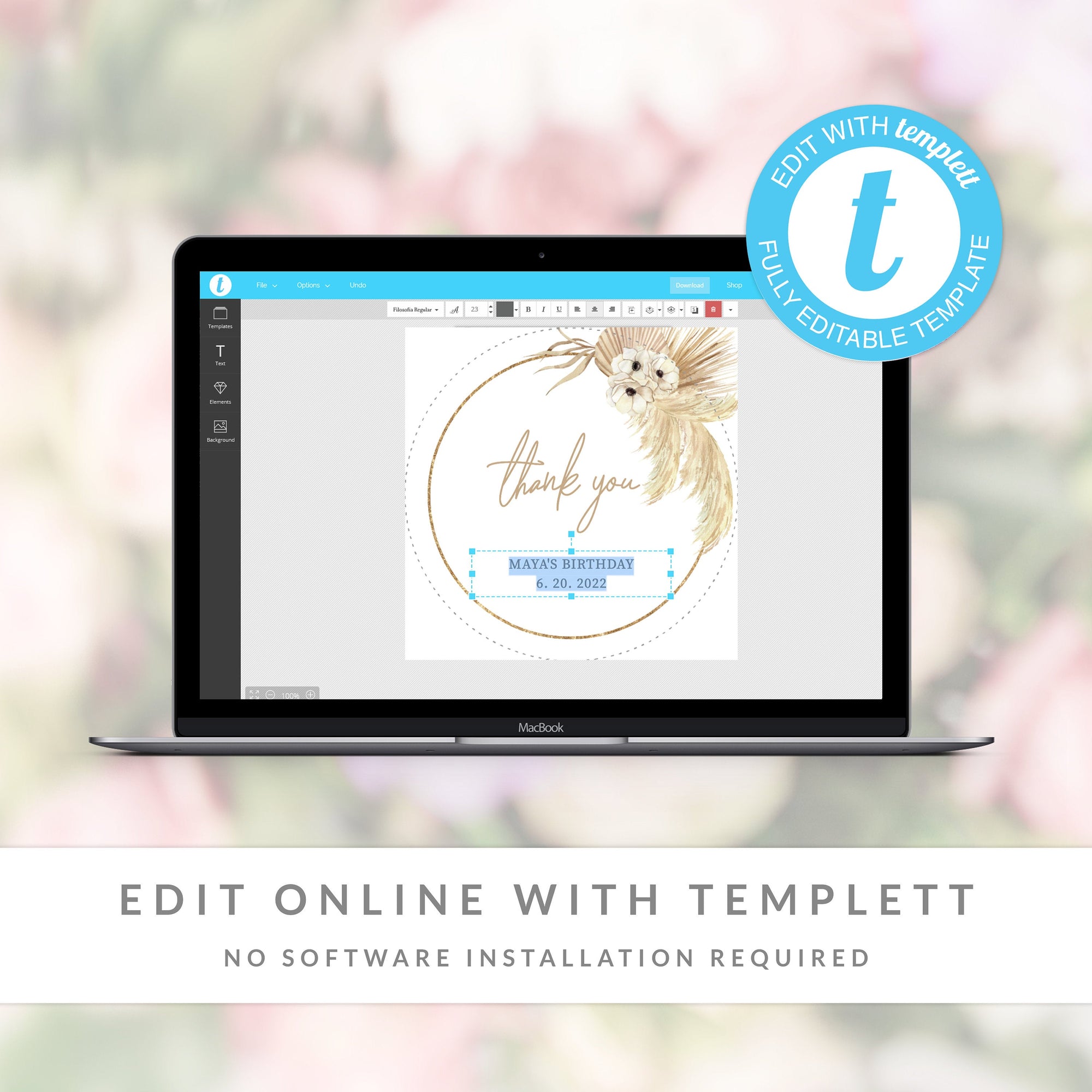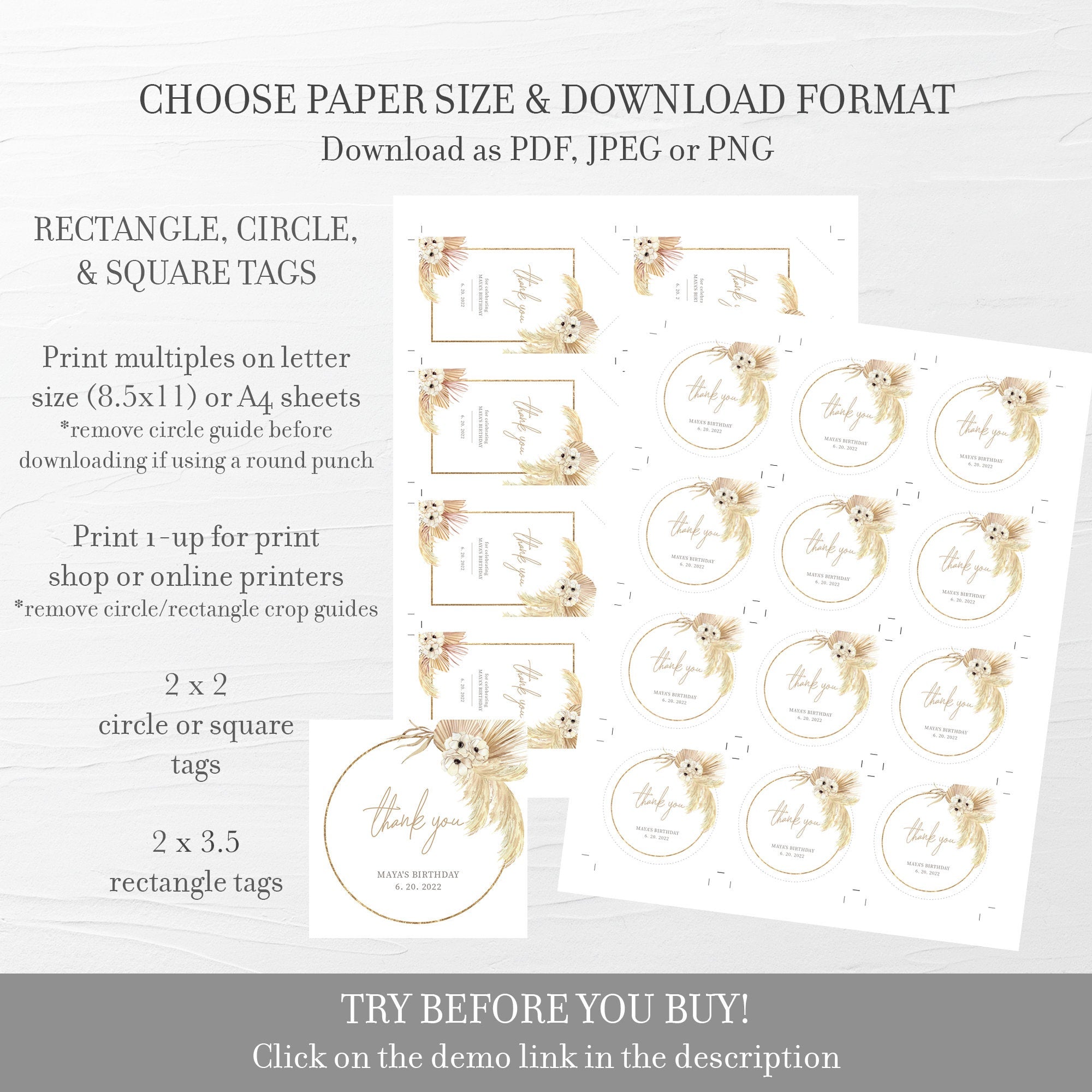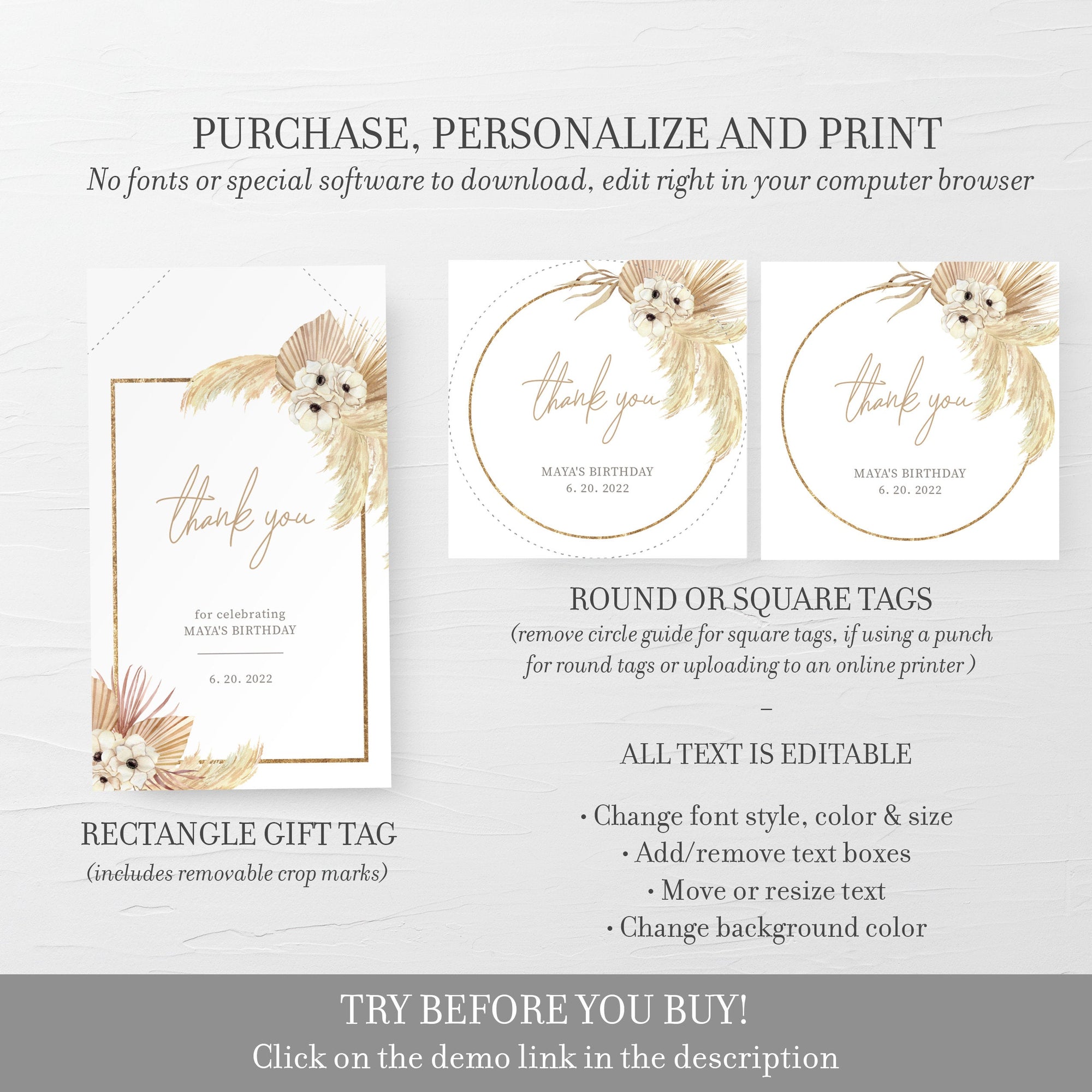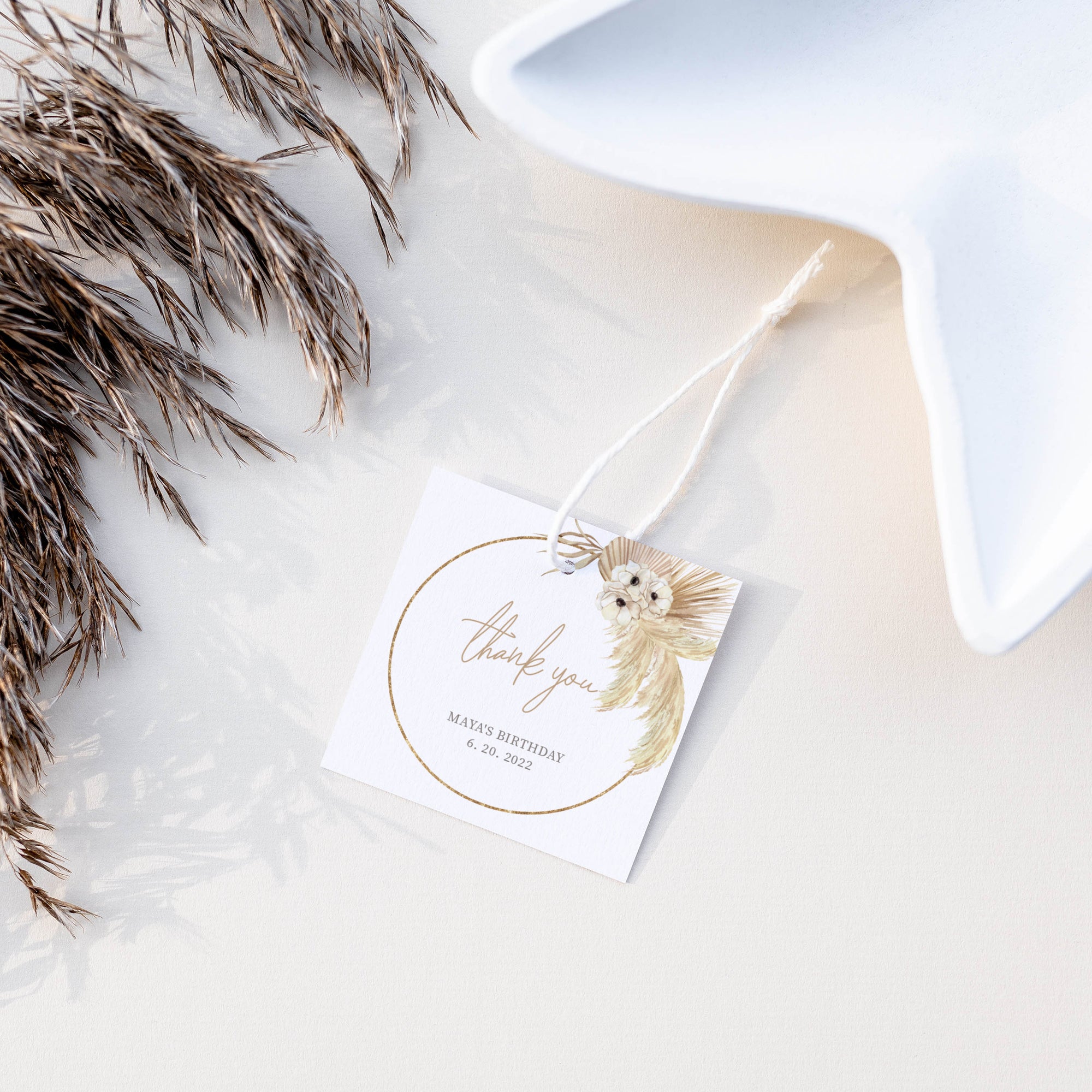 Desert Boho Birthday Party Favor Tags Template, Printable Pampas Grass Thank You Tags, Editable INSTANT DOWNLOAD - DP100